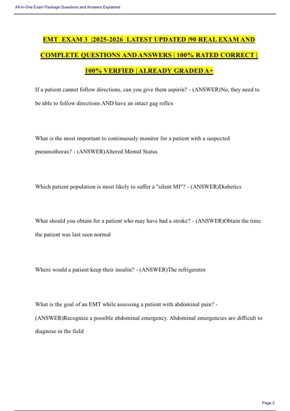 All-in-One Exam Package Questions and Answers - The Marketplace to Buy and Sell your Study Material