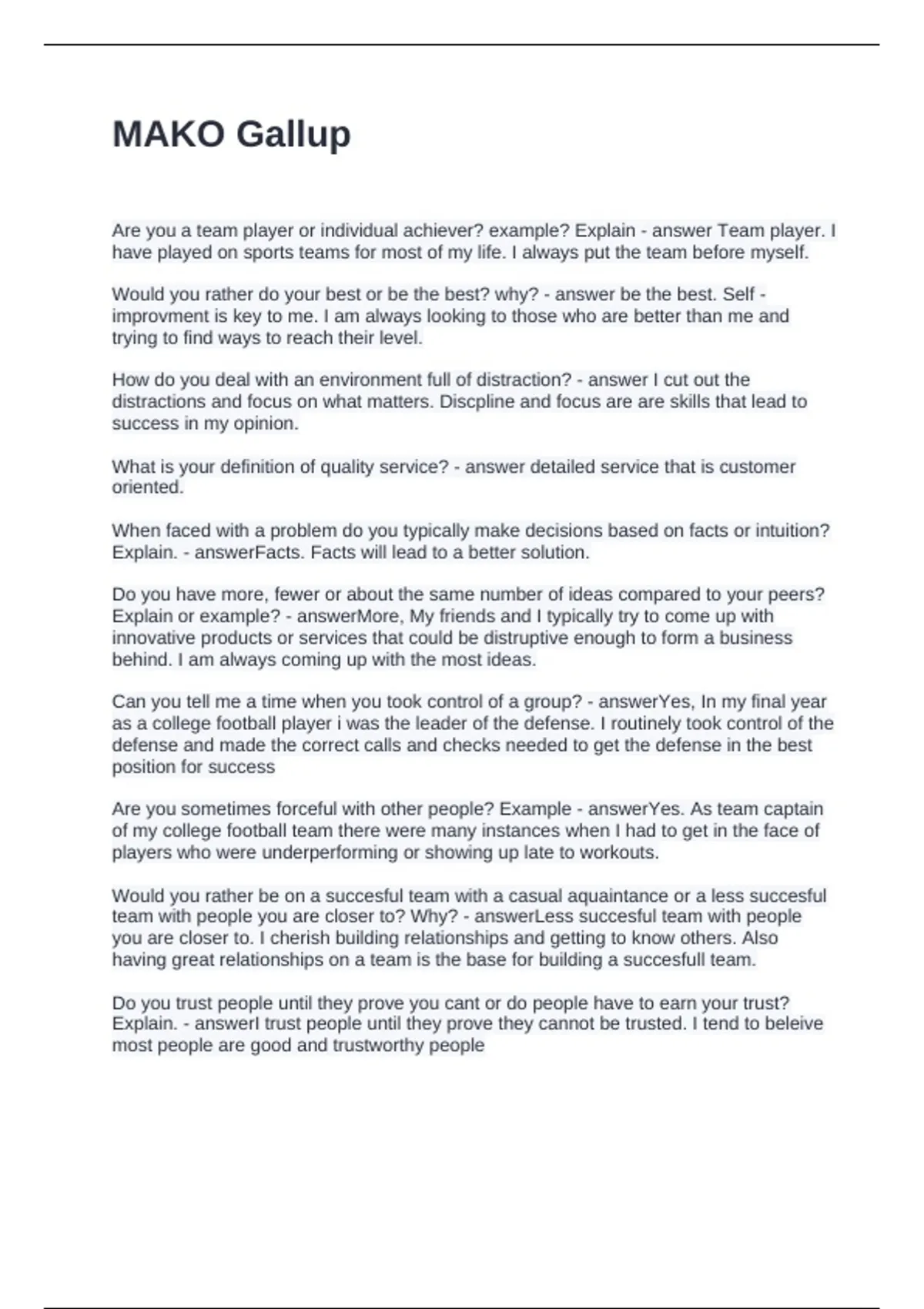 Exam of 6 pages for the course Gallup at Gallup (MAKO Gallup.)