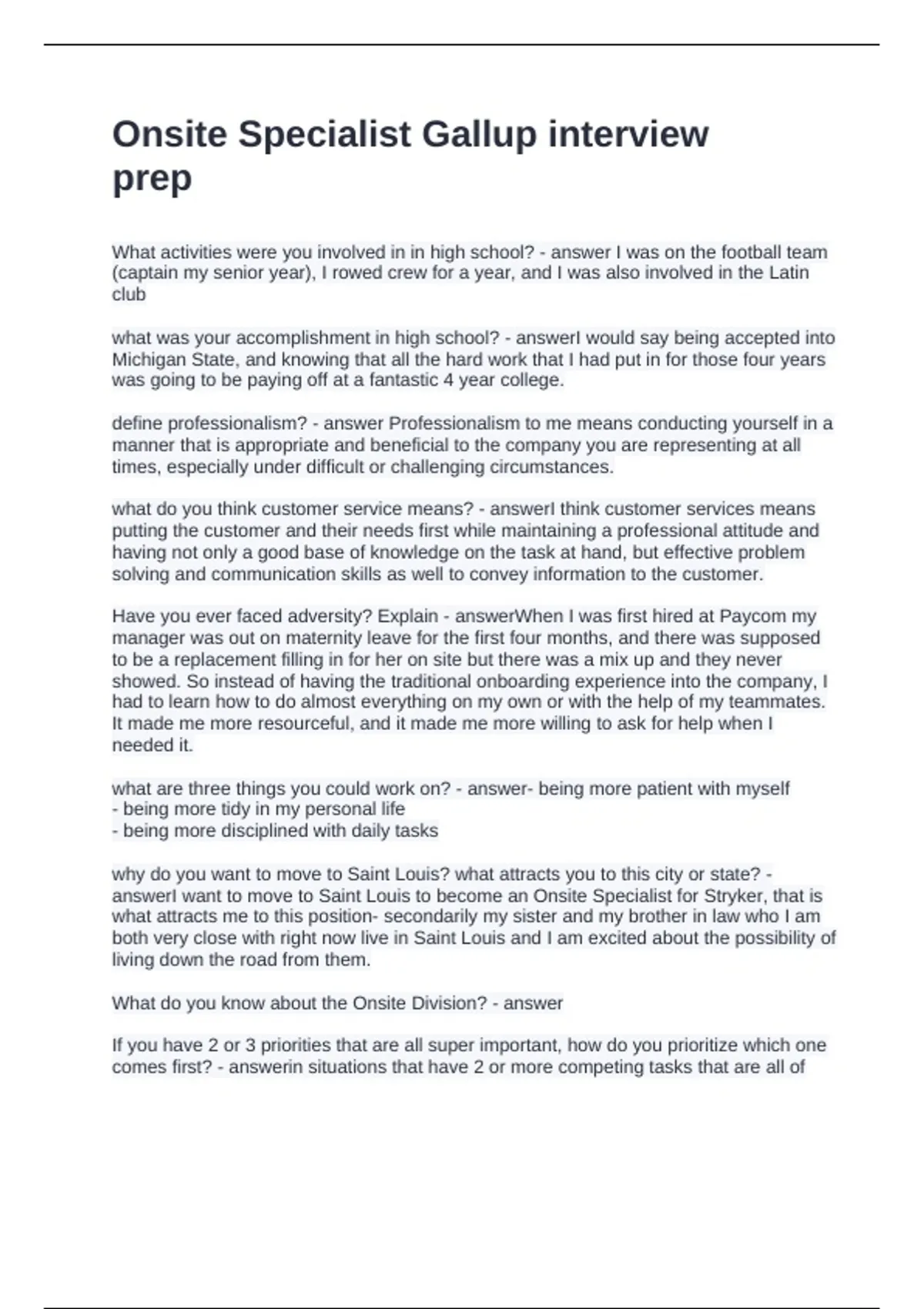 Onsite Specialist Gallup interview prep Questions with Accurate Answers