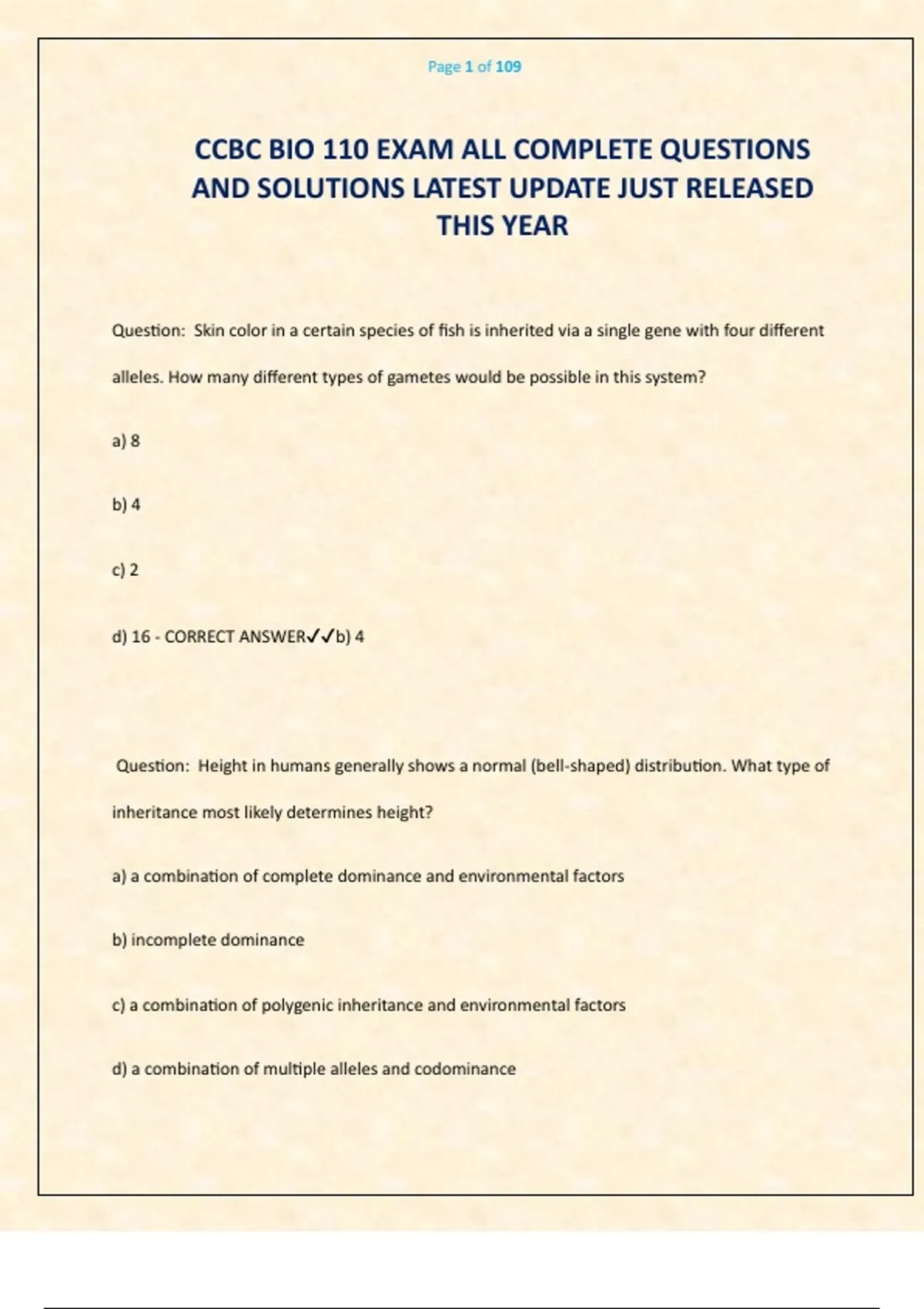 CCBC BIO 110 EXAM ALL COMPLETE QUESTIONS