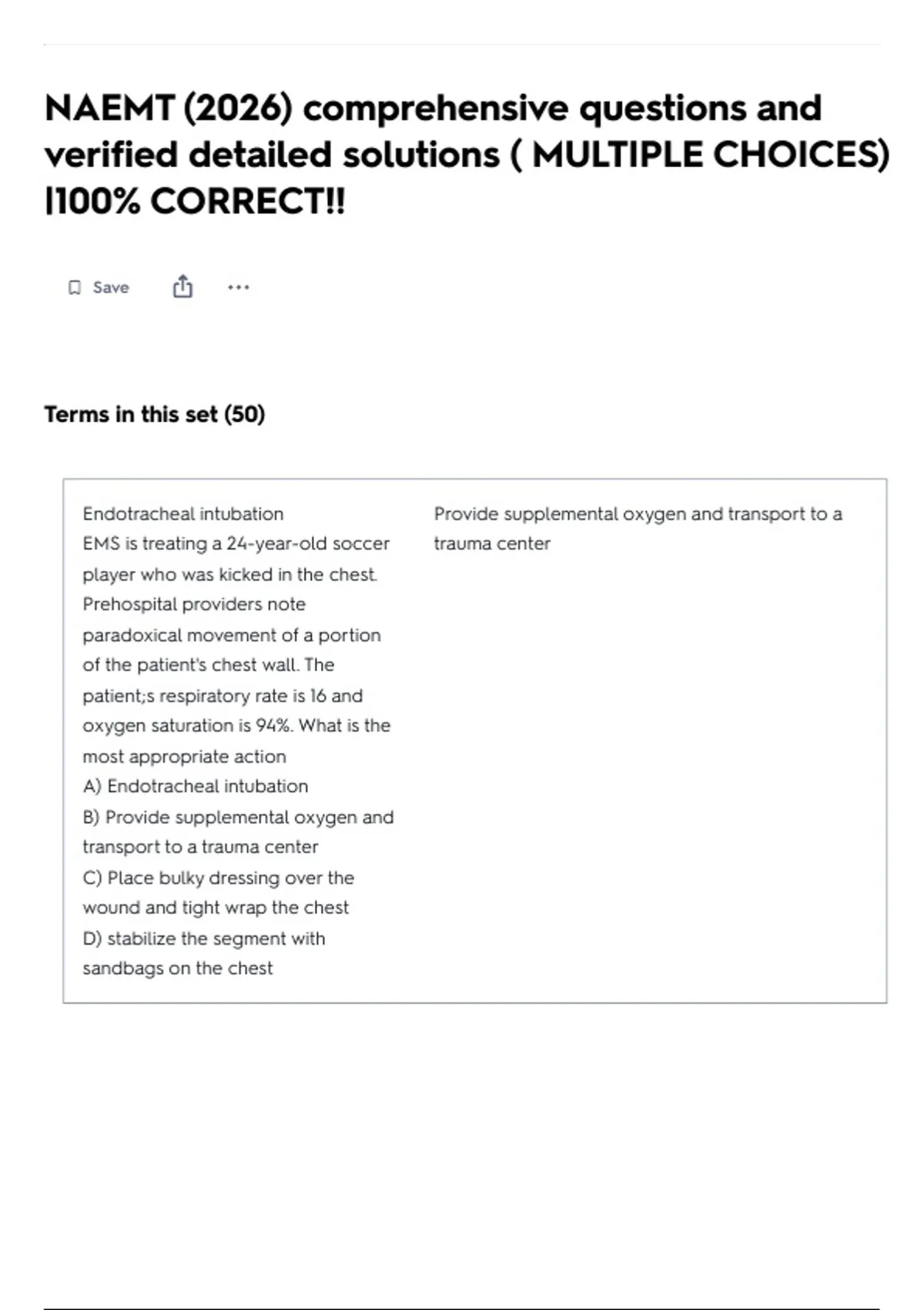 Endotracheal intubation Provide supplemental oxygen and transport to a