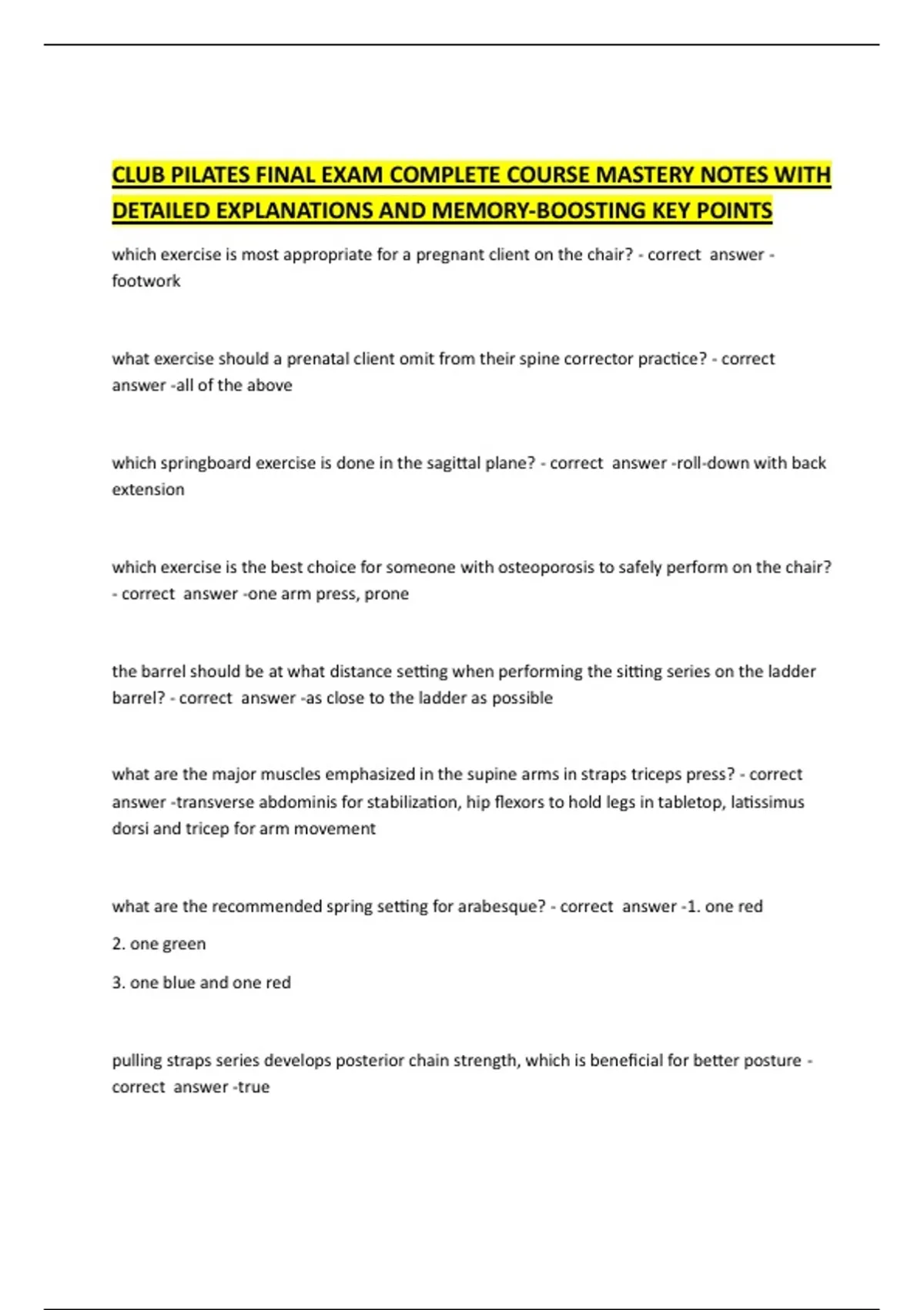 CLUB PILATES FINAL EXAM Complete Course Mastery Notes With Detailed Explanations and Memory-Boosting Key Points