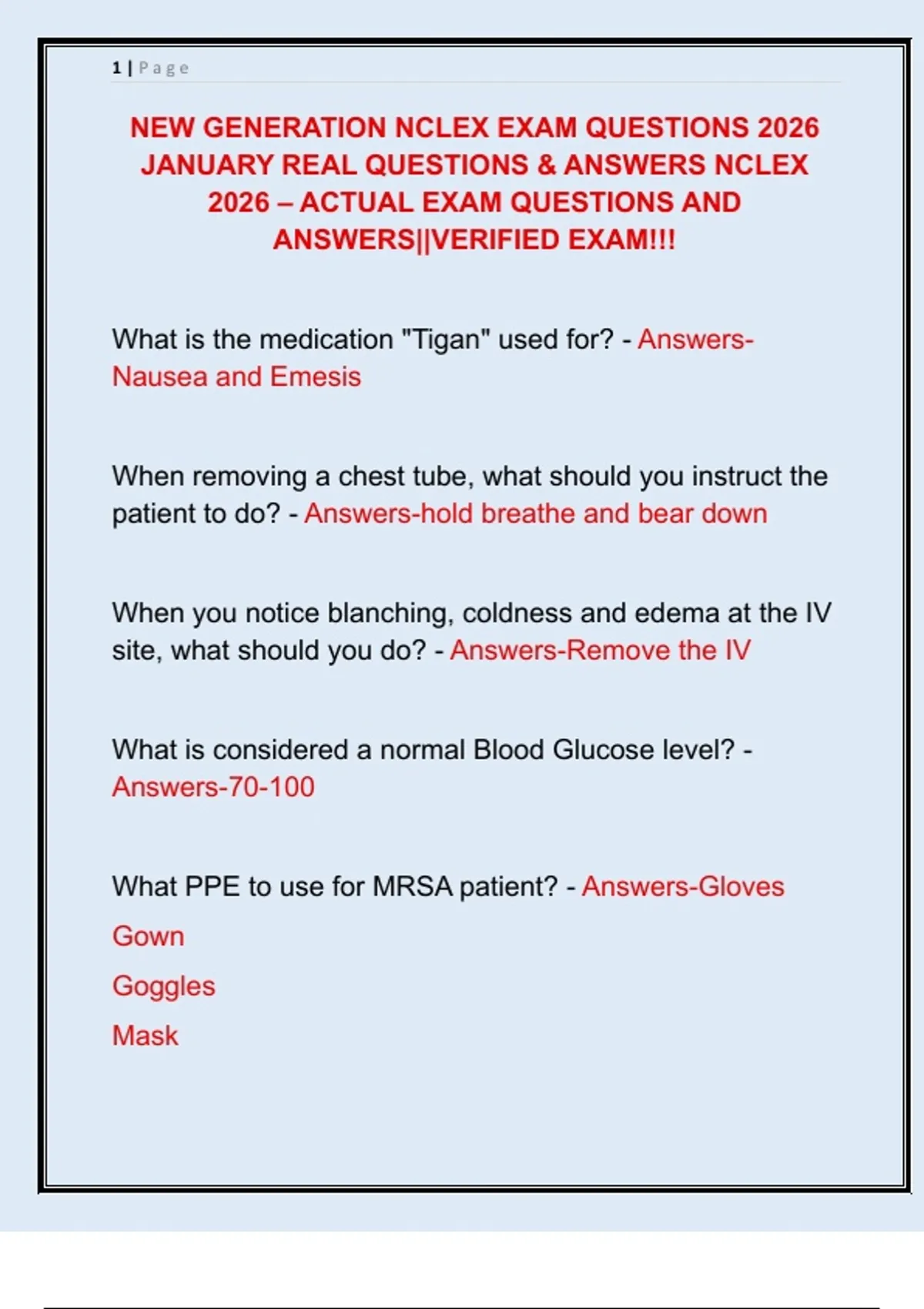 JANUARY REAL QUESTIONS & ANSWERS NCLEX