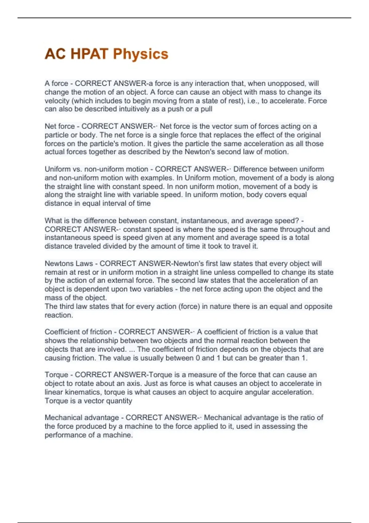 Friction - CORRECT ANSWER-· Friction is a force that holds back the movement of a