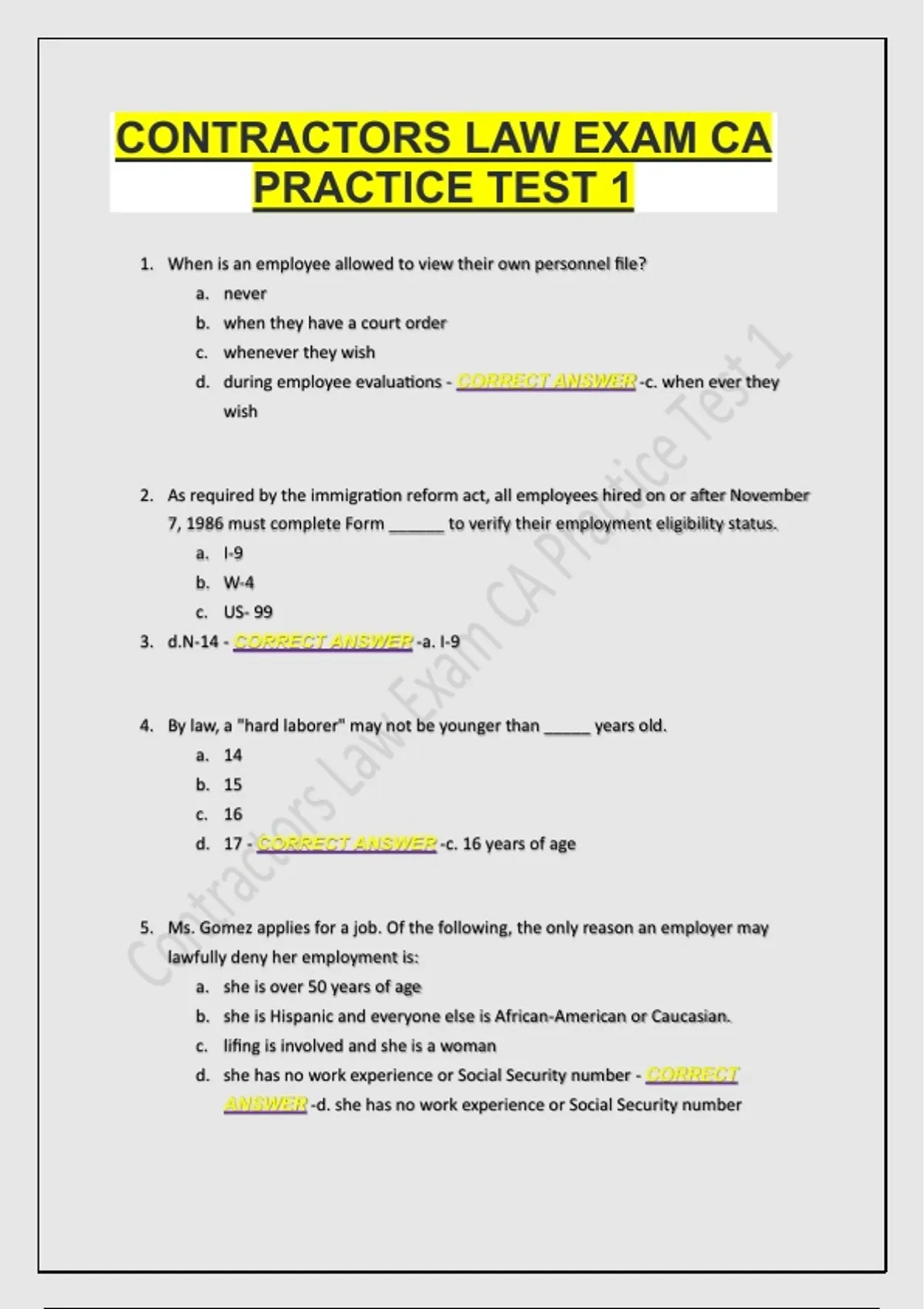 CORRECT ANSWER -b. It is not legal to ask prospective employees about