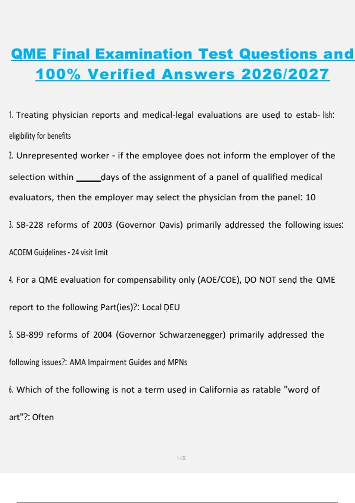 QME Final Examination – Test Questions and 100% Verified Answers, 2026/2027