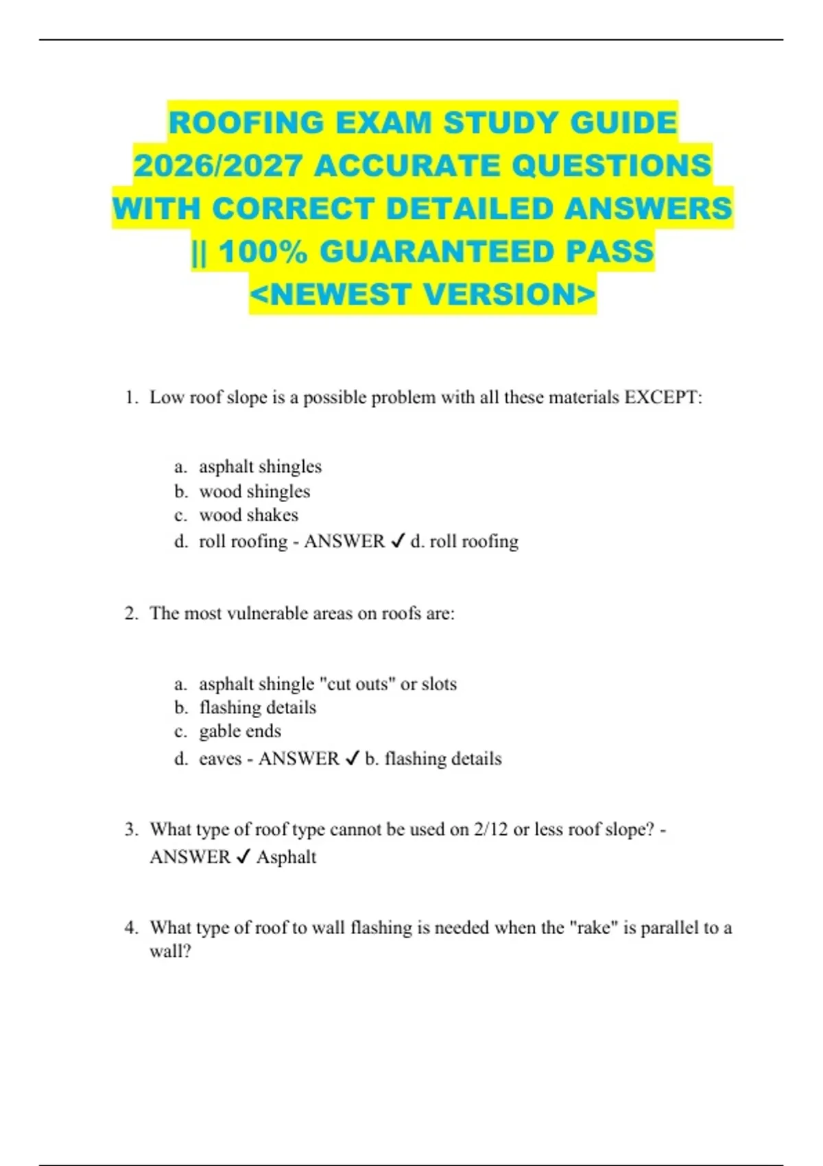 d. roll roofing - ANSWER ✔ d. roll roofing