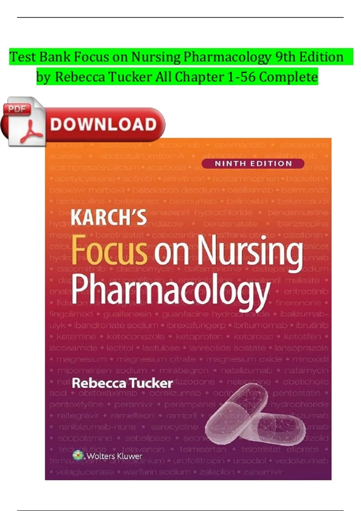 Test Bank Focus on Nursing Pharmacology 9th Edition by Rebecca Tucker All Chapter 1-56 Complete