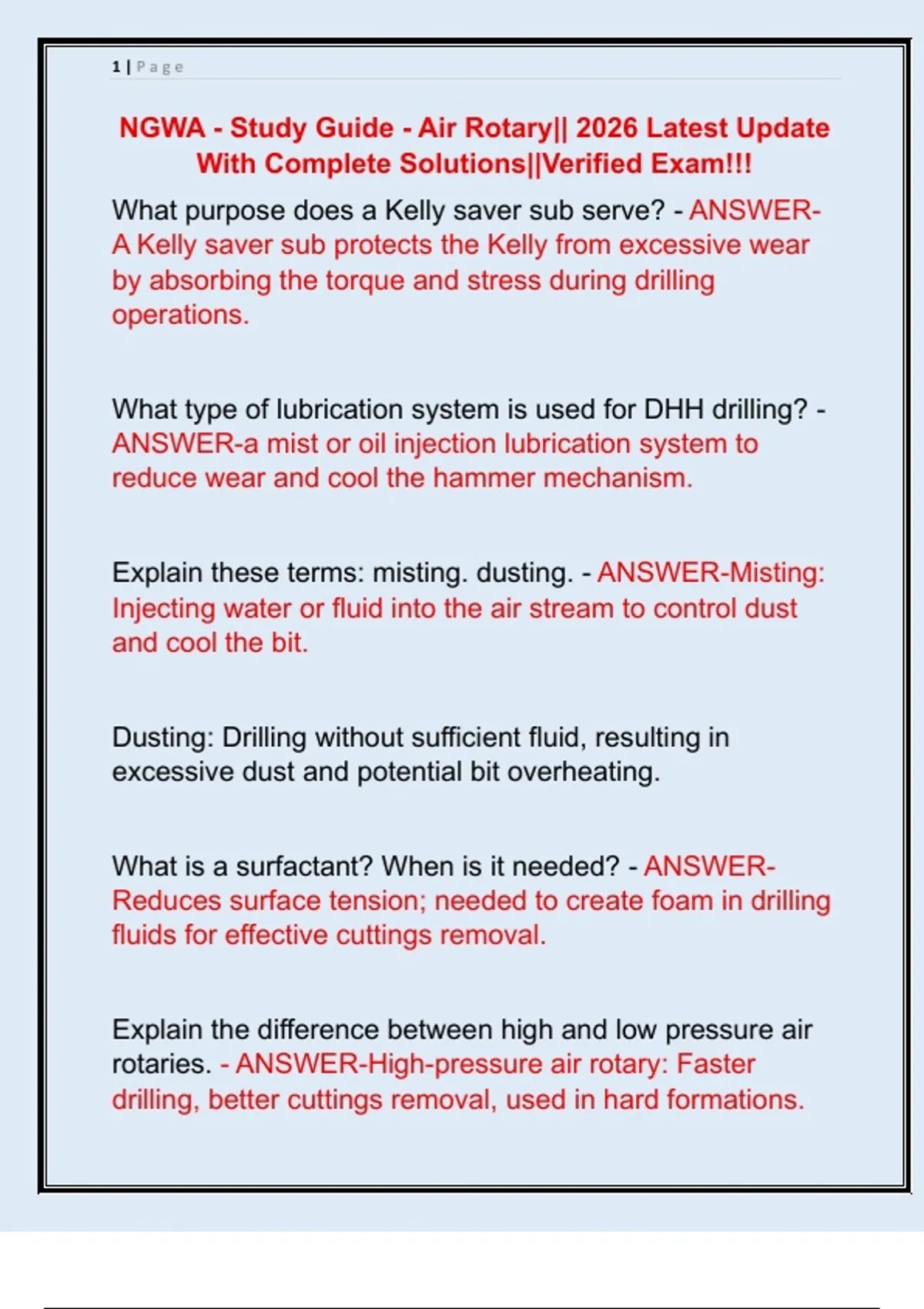 NGWA - Study Guide - Air Rotary|| 2026 Latest Update