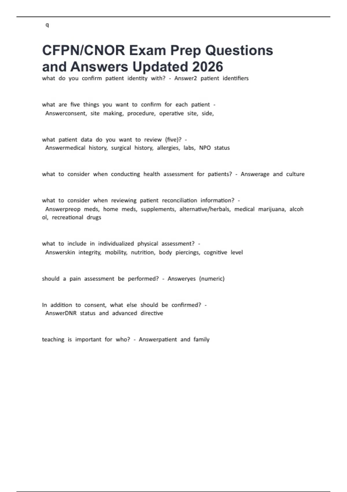 CFPN/CNOR Exam Prep Questions and Answers Updated 2026