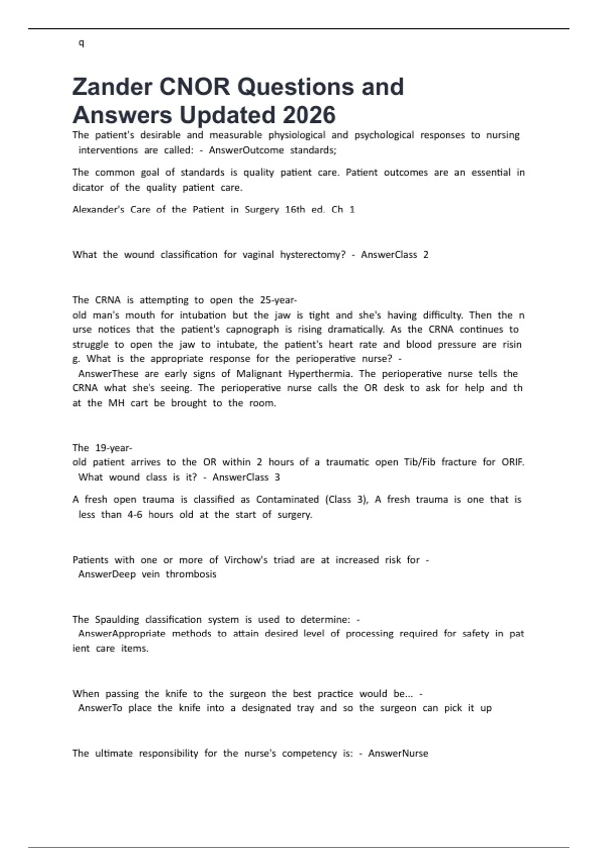 Zander CNOR Questions and Answers Updated 2026