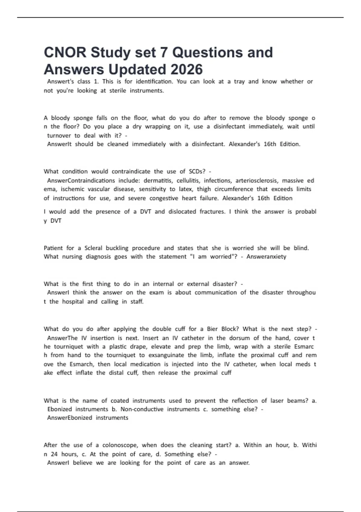 CNOR Study set 7 Questions and Answers Updated 2026