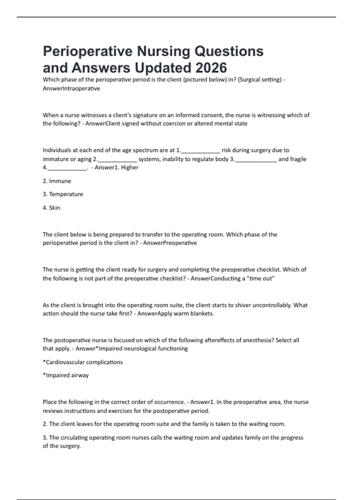 Place the following in the correct order of occurrence. - Answer1. In the preoperative area, the nurse