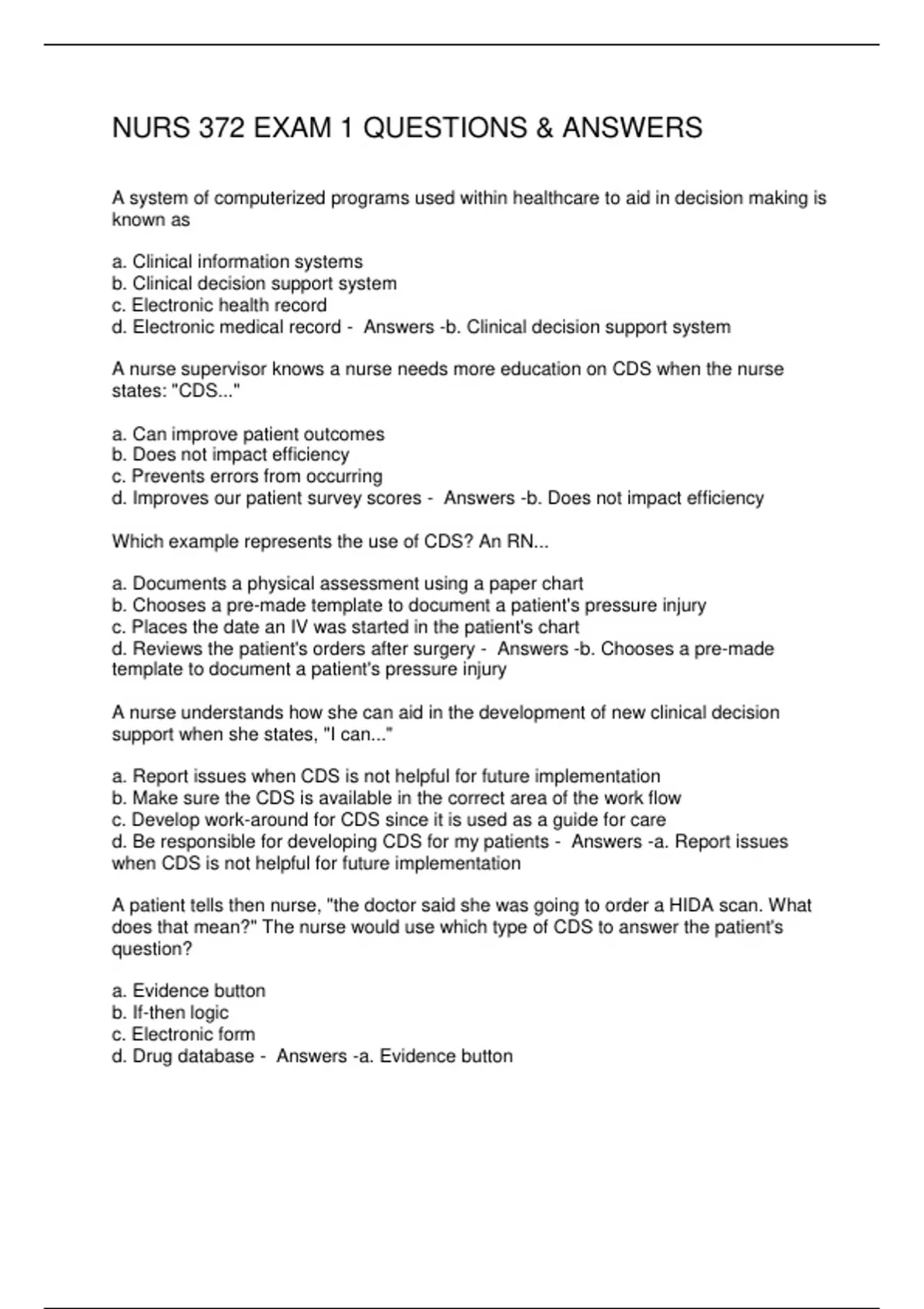 NURS 372 EXAM 1 QUESTIONS & ANSWERS