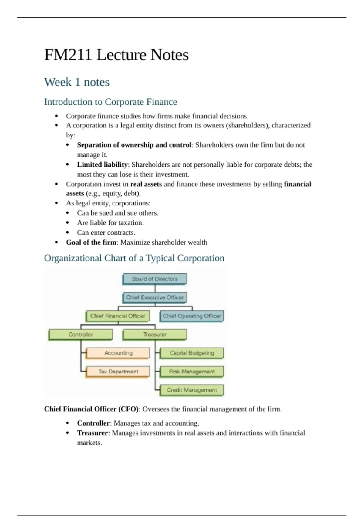 Chief Financial Officer (CFO): Oversees the financial management of the firm.