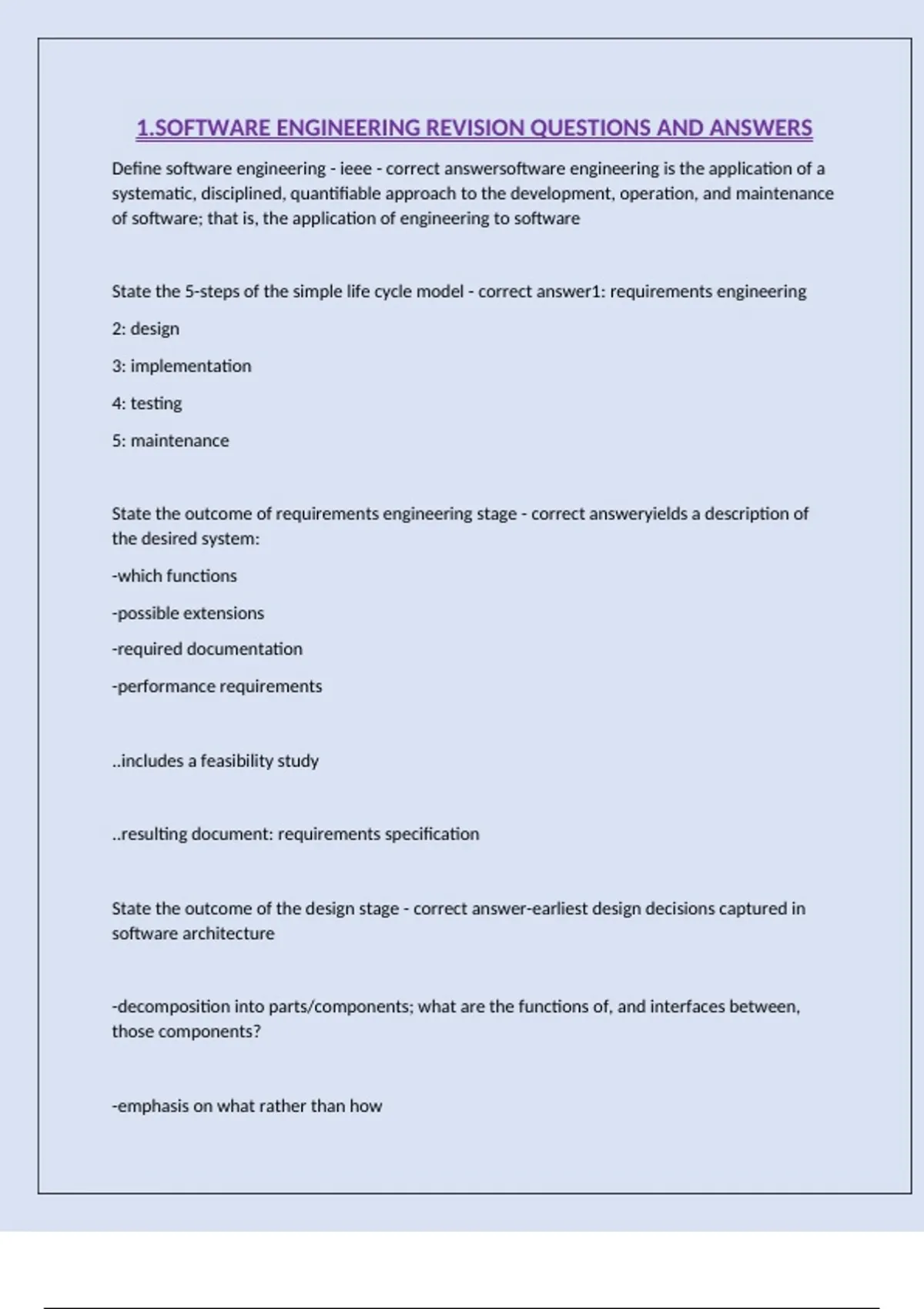1.SOFTWARE ENGINEERING REVISION QUESTIONS AND ANSWERS