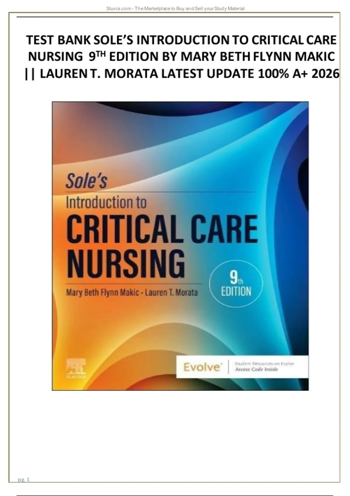 TEST BANK SOLE’S INTRODUCTION TO CRITICAL CARE
