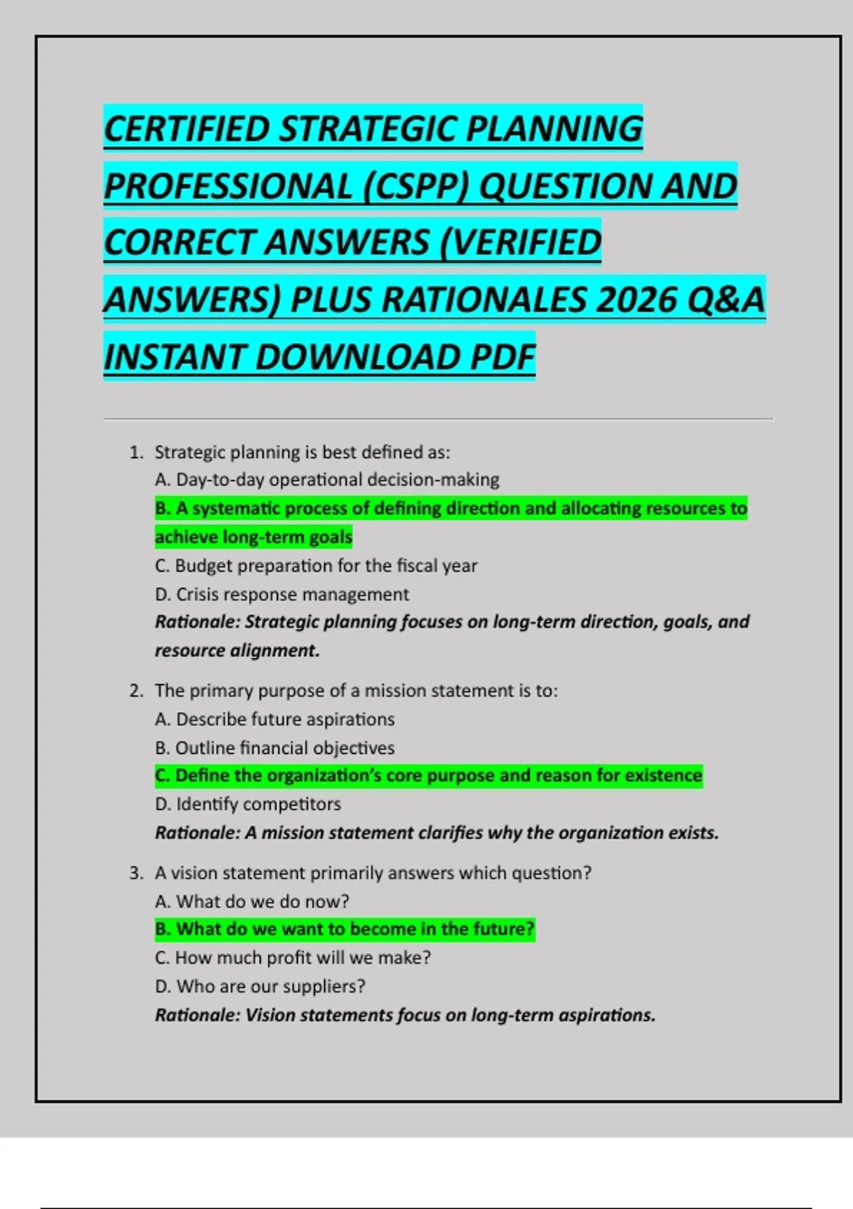 ANSWERS) PLUS RATIONALES 2026 Q&A
