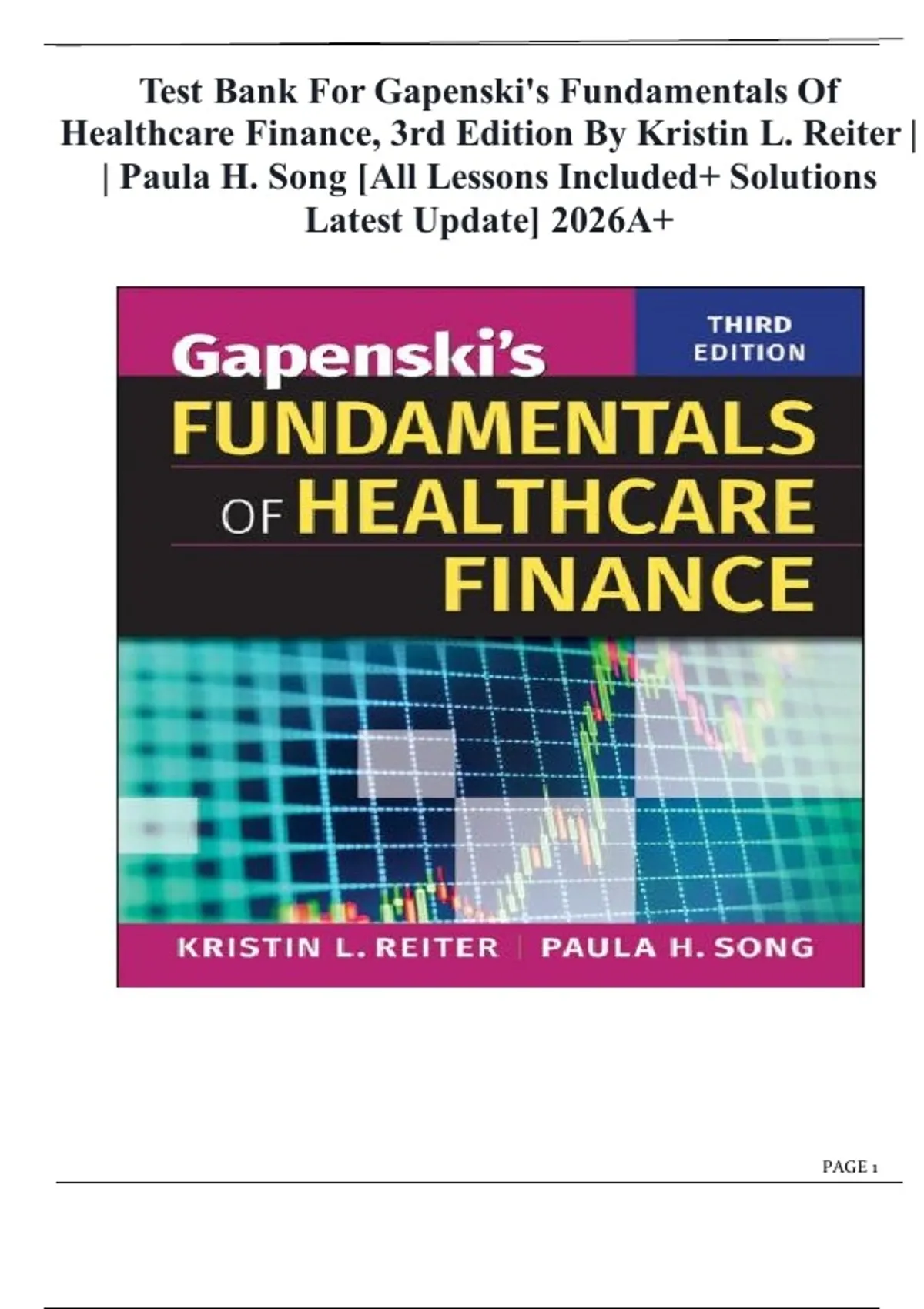 Test Bank For Gapenski's Fundamentals Of Healthcare Finance, 3rd Edition By Kristin L. Reiter | | Paula H. Song [All Lessons Included+ Solutions Latest Update] 2026A+