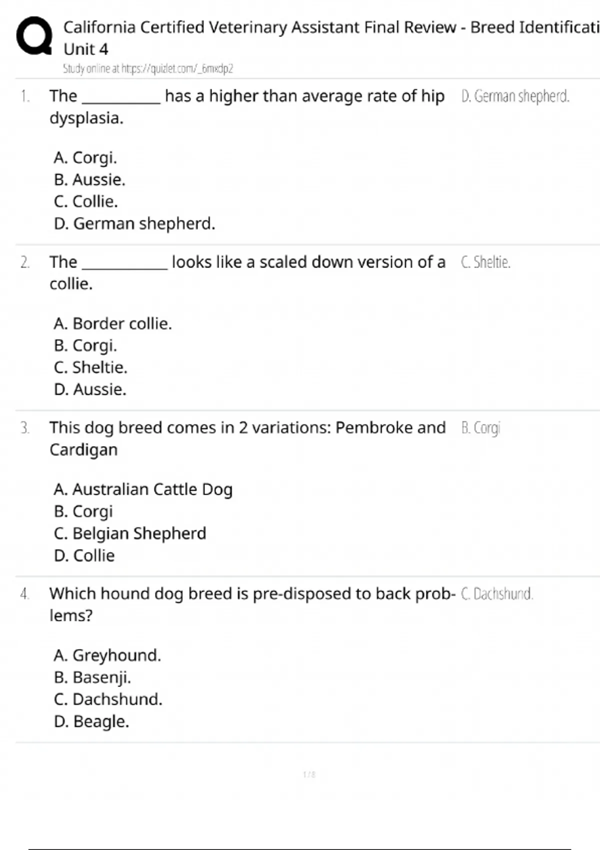 California Certified Veterinary Assistant Final Review / Breed Identification Unit 4 / 2025 Exam Prep