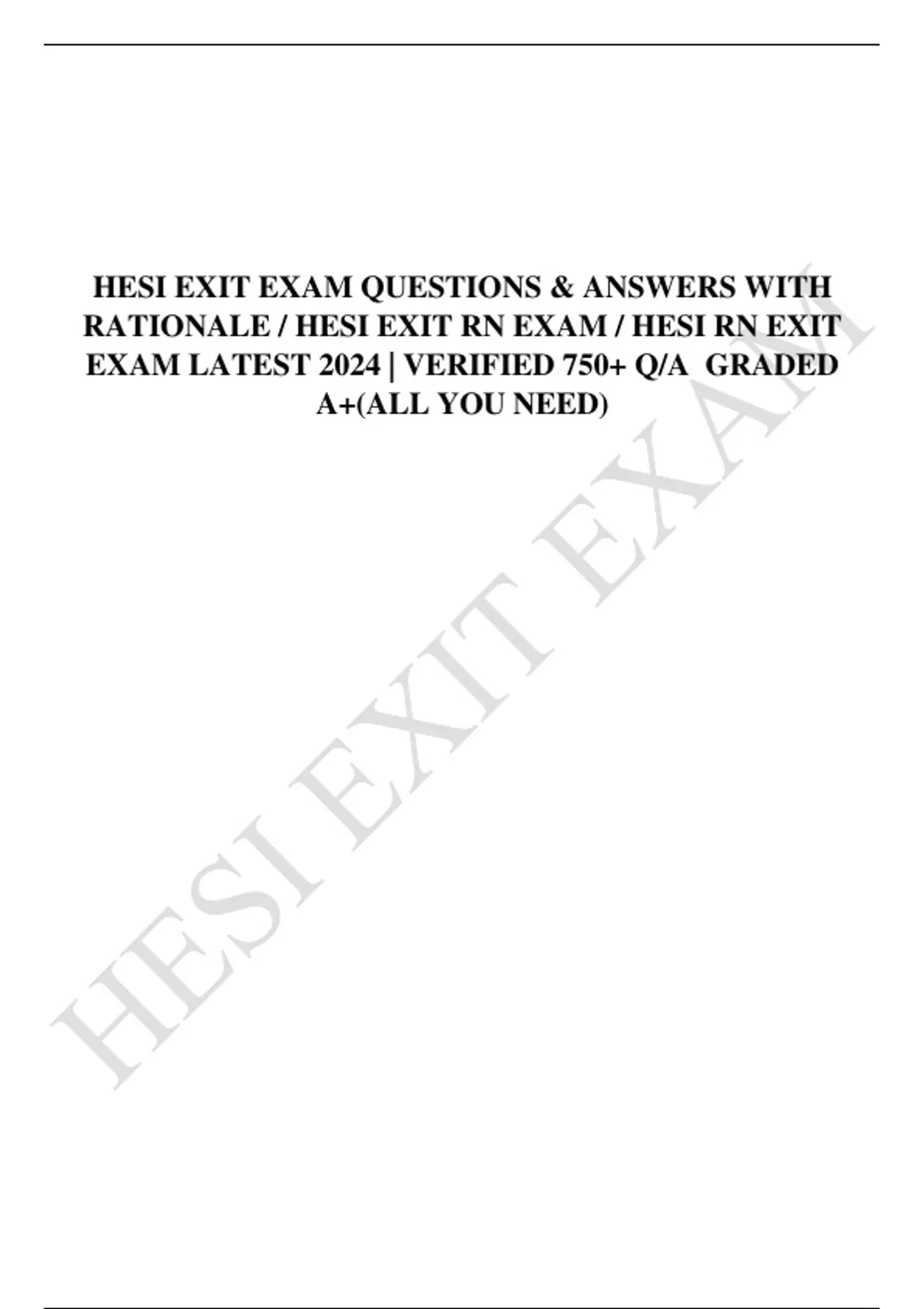 This comprehensive nursing exam resource includes 750 HESI Exit Exam RN questions and answers with detailed rationales for the 2026/2027 testing cycle, designed to reflect historical HESI Exit exam trends, commonly searched nursing topics, and frequently tested NCLEX-style concepts. The content covers medical-surgical nursing, pharmacology, pediatrics, maternity, mental health, leadership, and critical thinking. Each question includes a clear rationale to strengthen clinical judgment and exam readiness. Ideal for HESI RN Exit Exam preparation, remediation, final review, and repeat testing, this verified resource supports confident, effective study aligned with current HESI exam standards.