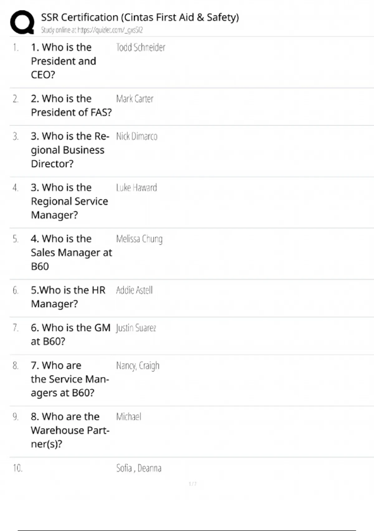 SSR Certification Cintas / First Aid & Safety 2025 Specialist Exam Prep & Study Guide