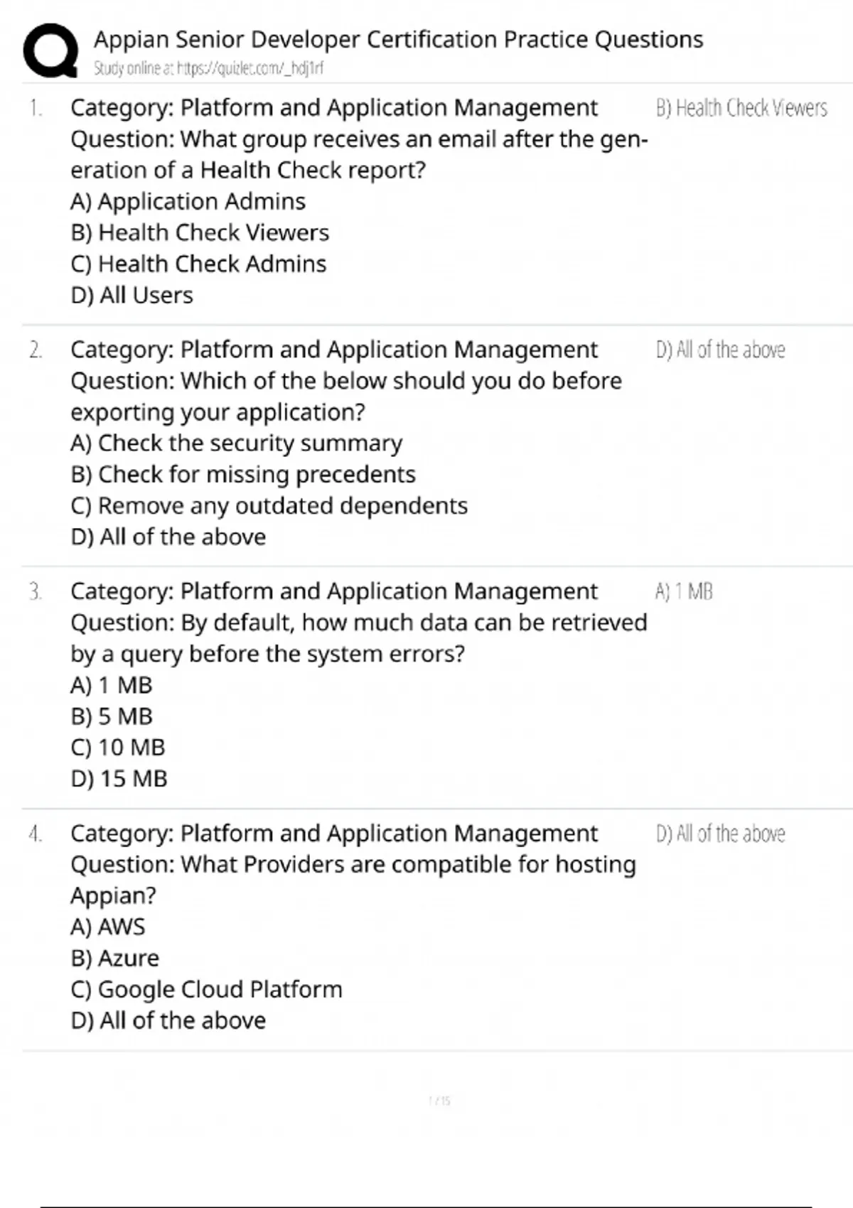 Validate your expertise in designing complex, enterprise-grade applications with this targeted 2025 practice question set for the Appian Senior Developer certification. This advanced resource challenges you with scenario-based questions on sophisticated process modeling, expression rules, smart services integration, performance optimization, security model implementation, and application design patterns. Featuring detailed rationales and references to Appian best practices, this practice bank is designed to prepare experienced developers for the rigorous problem-solving required to pass the senior-level certification exam.