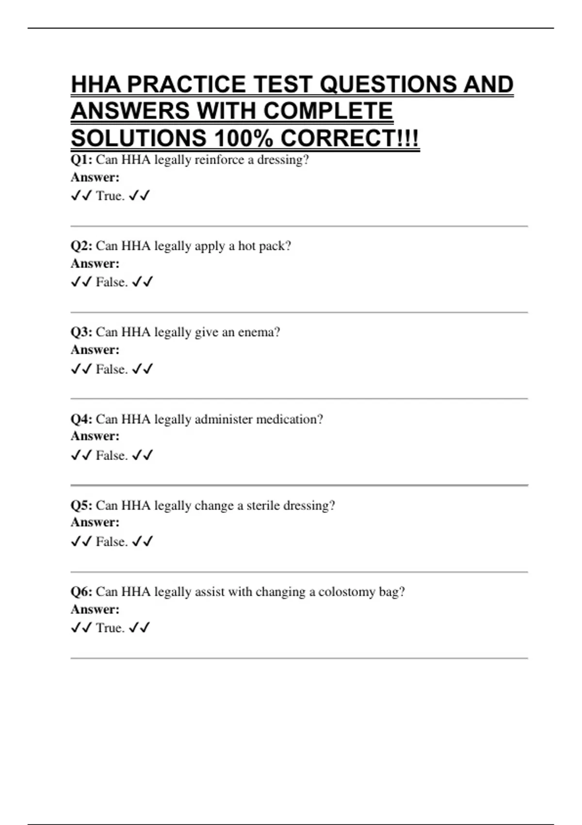 HHA PRACTICE TEST QUESTIONS AND