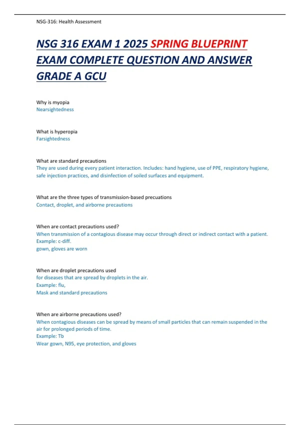 NSG 316 EXAM 1 2025 SPRING BLUEPRINT
