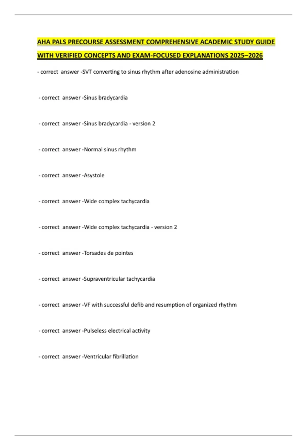 AHA PALS precourse assessment Comprehensive Academic Study Guide With Verified Concepts and Exam-Focused Explanations 2025–2026