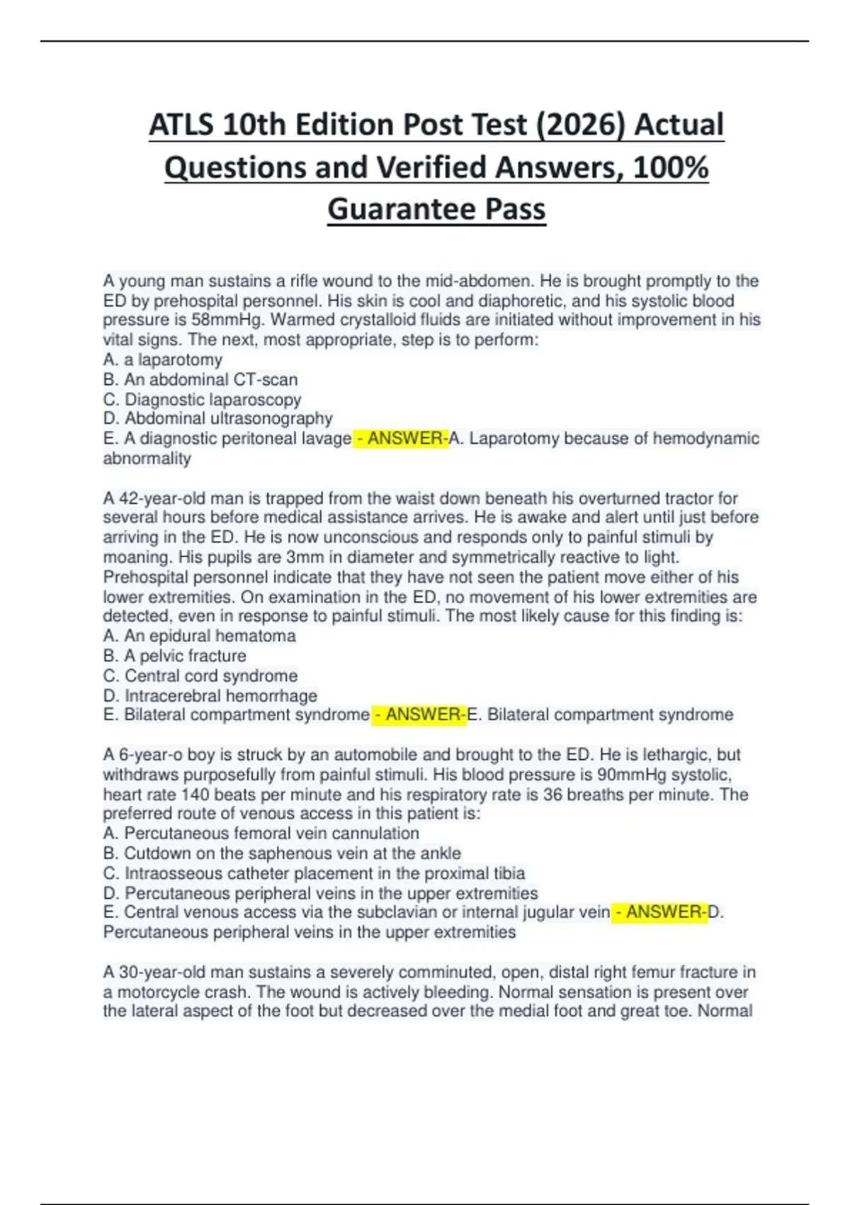 ATLS 10th Edition Post Test (2026) Actual