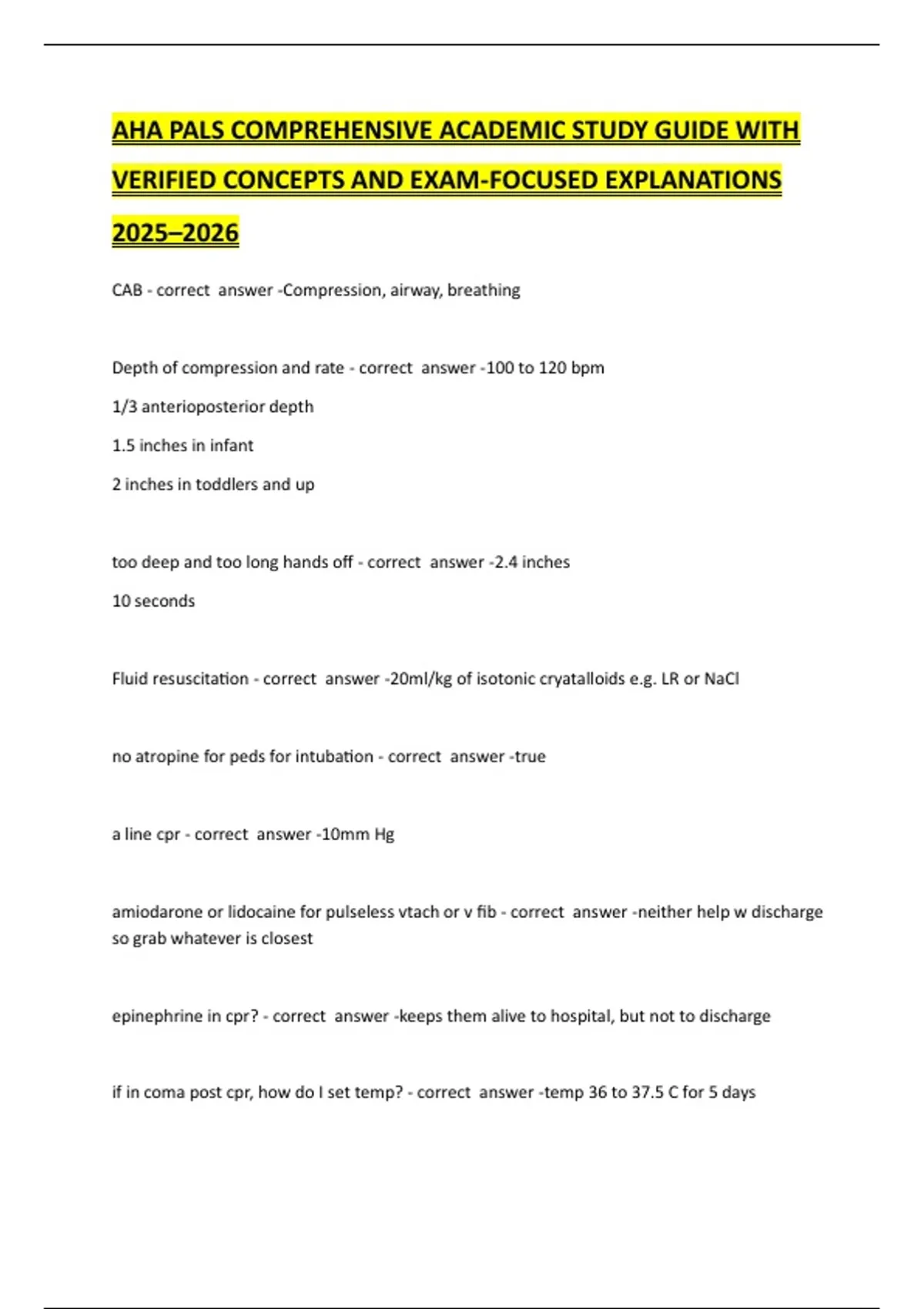AHA Pals Comprehensive Academic Study Guide With Verified Concepts and Exam-Focused Explanations 2025–2026