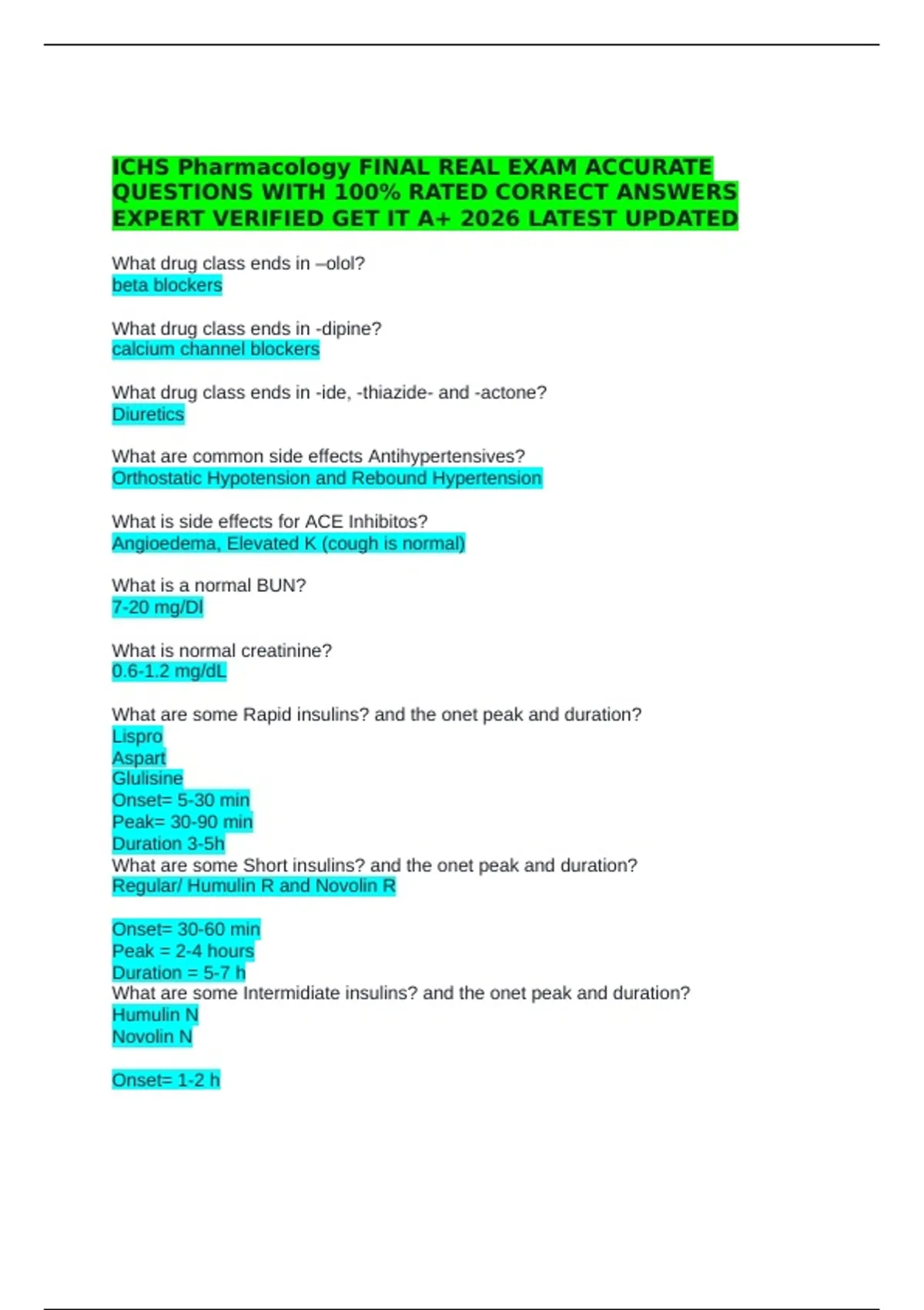 ICHS Pharmacology FINAL REAL EXAM ACCURATE QUESTIONS WITH 100% RATED CORRECT ANSWERS EXPERT VERIFIED GET IT A+ 2026 LATEST UPDATED