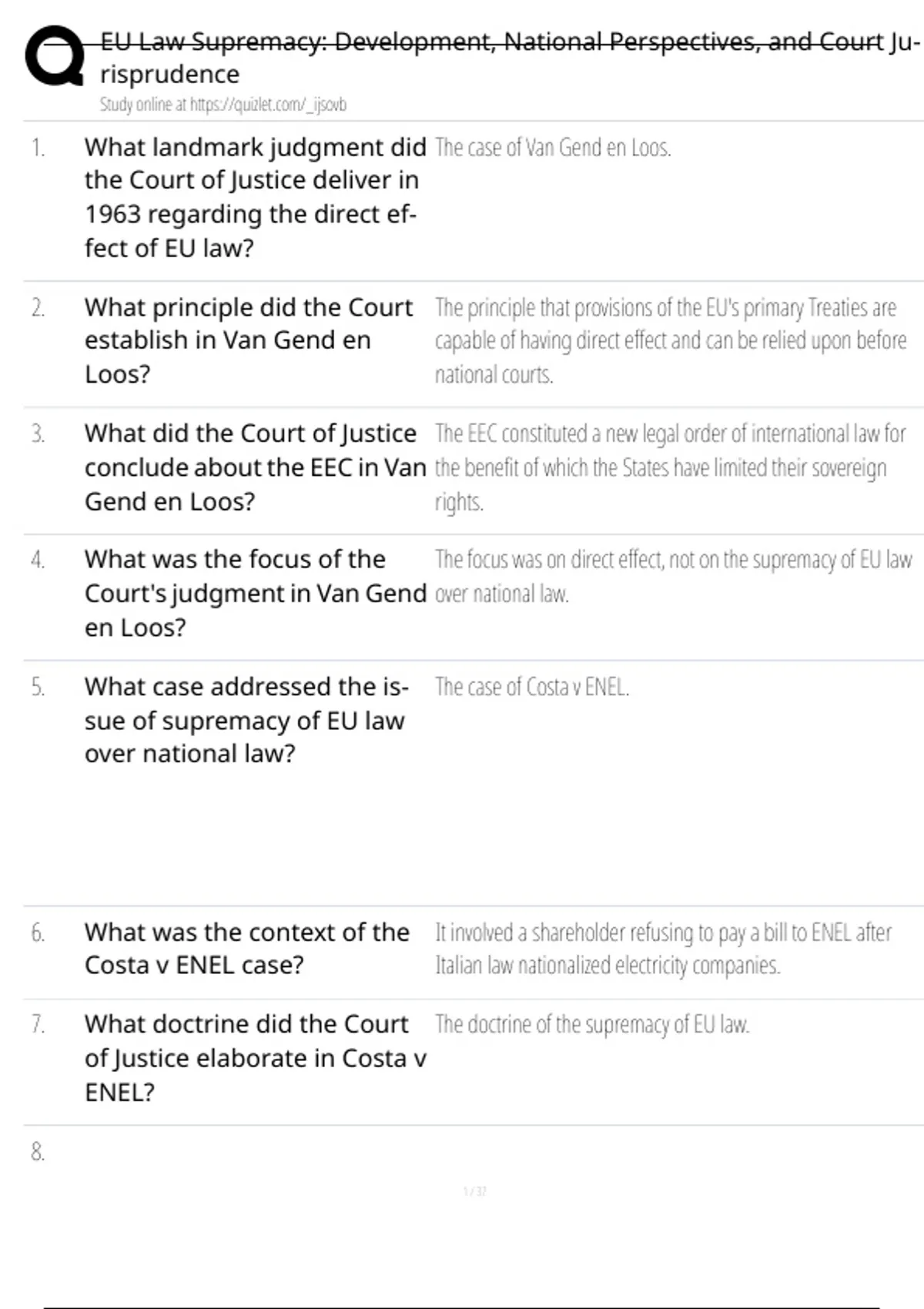 1. What landmark judgment did The case of Van Gend en Loos.