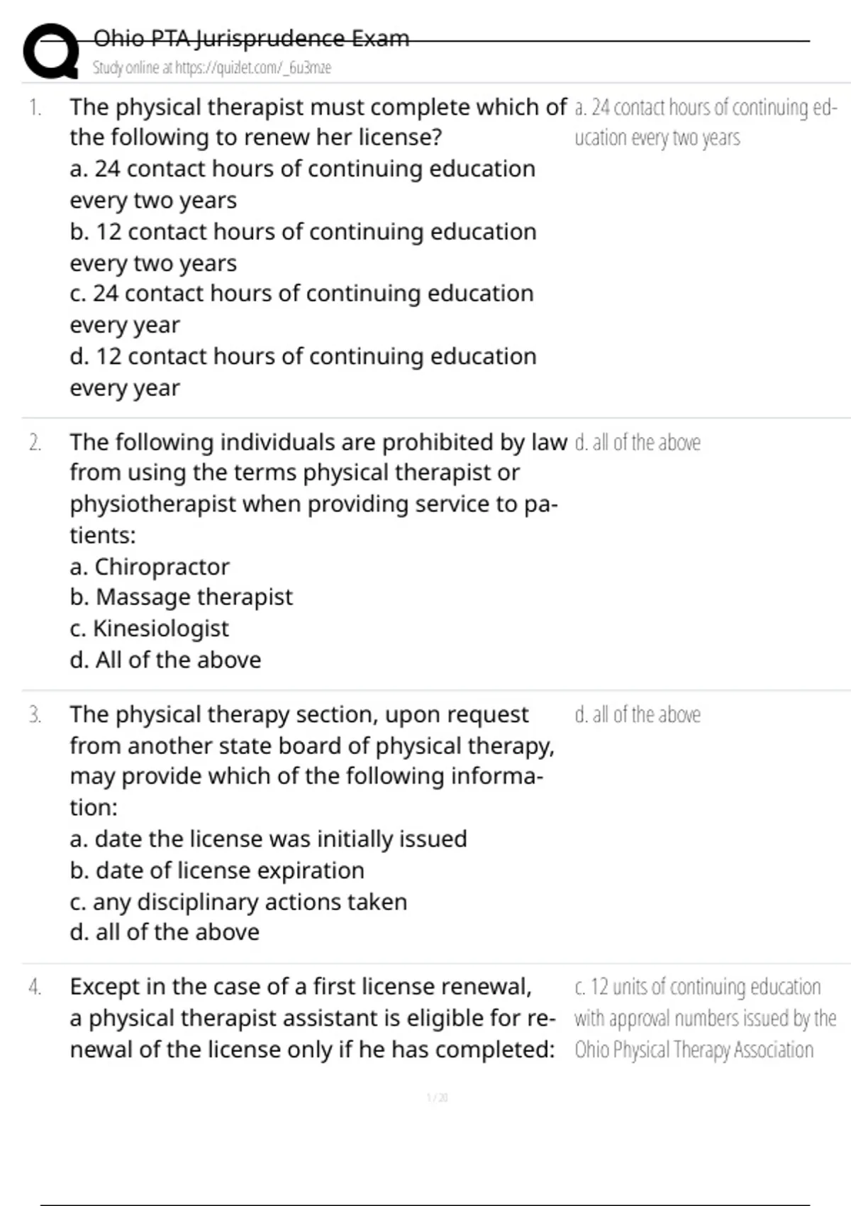 Ohio PTA Jurisprudence Exam (2026) - All Questions & 100% Correct Answers