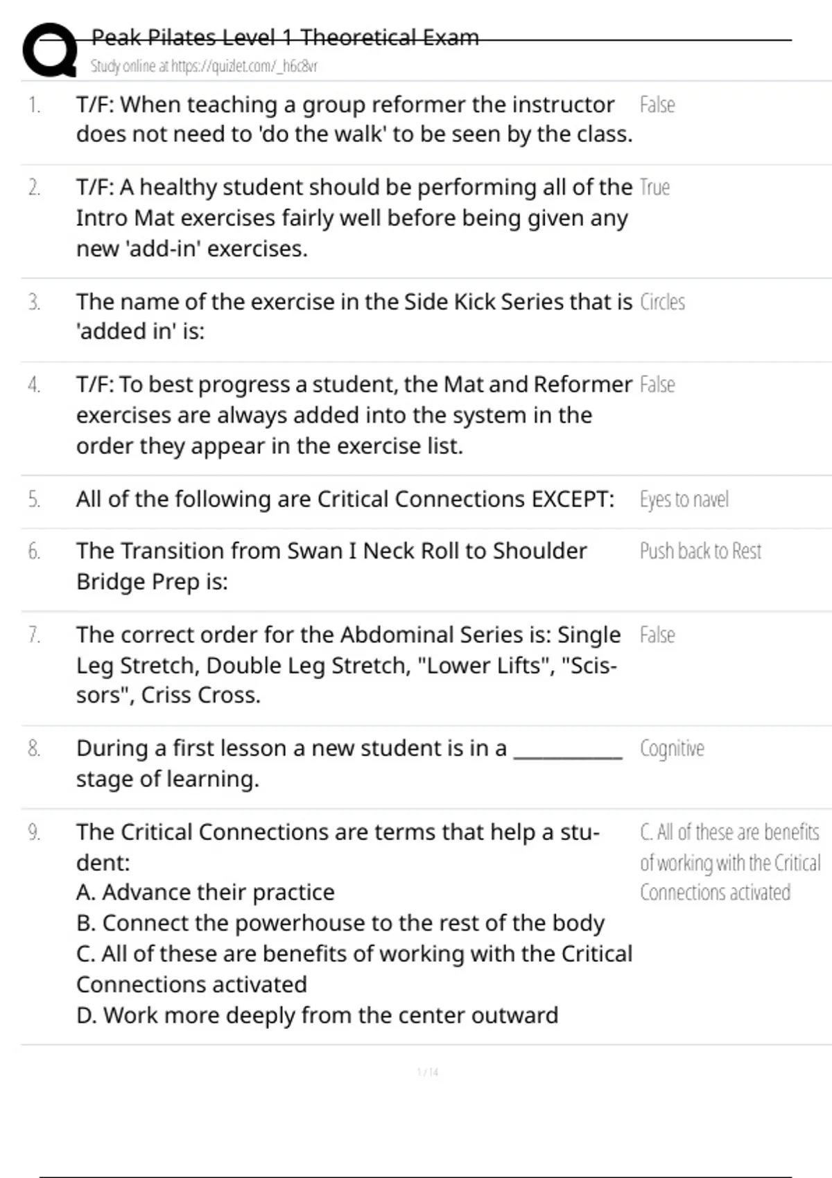 , Peak Pilates Level 1 Theoretical Exam