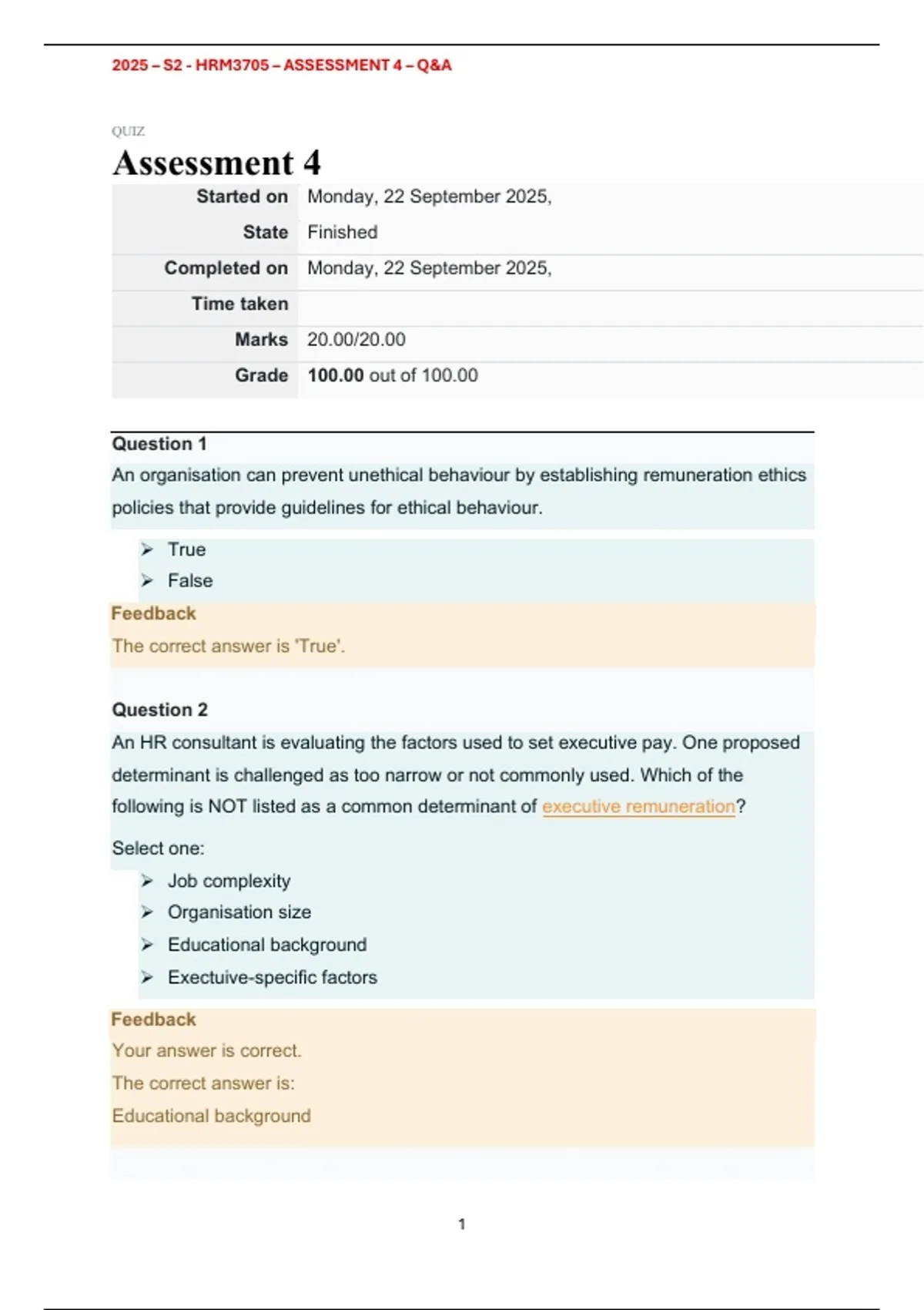 2026 - HRM3705 - ASSESSMENT 4 - QUESTIONS AND ANSWERS - SEMESTER 1
