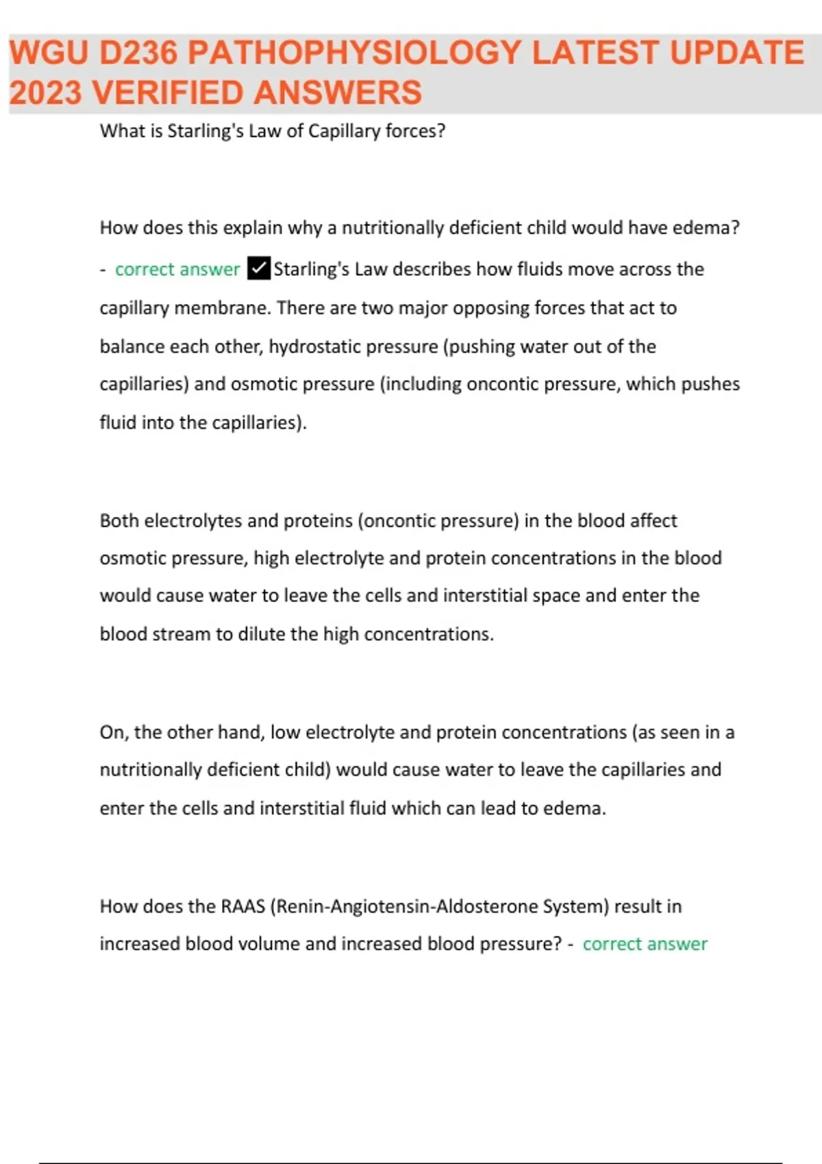 WGU D236 PATHOPHYSIOLOGY EXAM QUESTIONS & VERIFIED ANSWERS