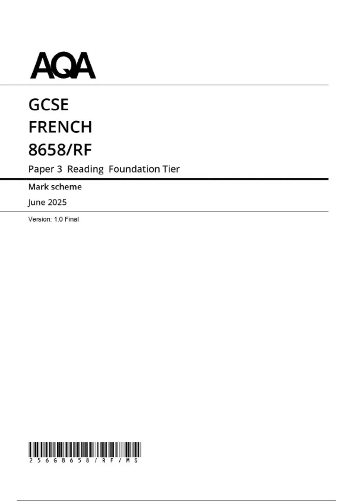 AQA Gcse French Foundation tier 2025 paper 3 8658-RF Mark Scheme