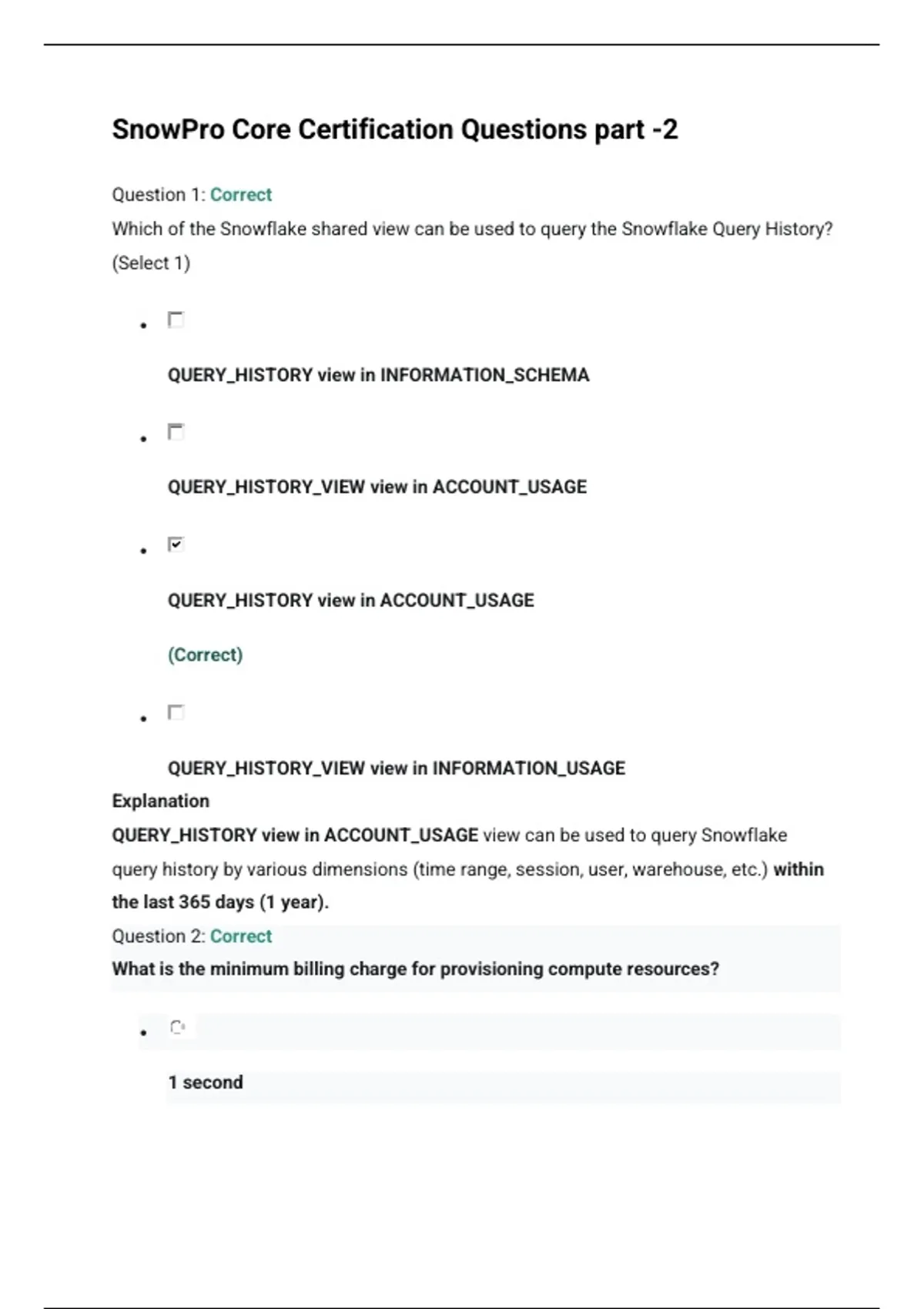 SnowPro Core Certification Questions part -2