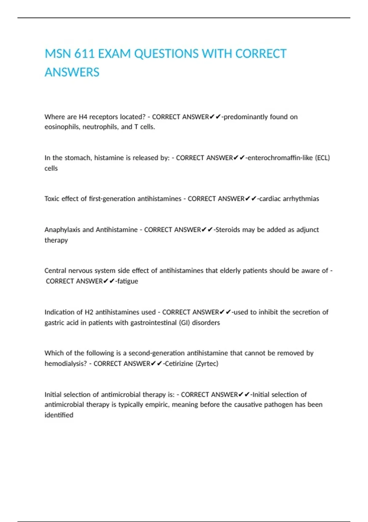 MSN 611 EXAM QUESTIONS WITH CORRECT