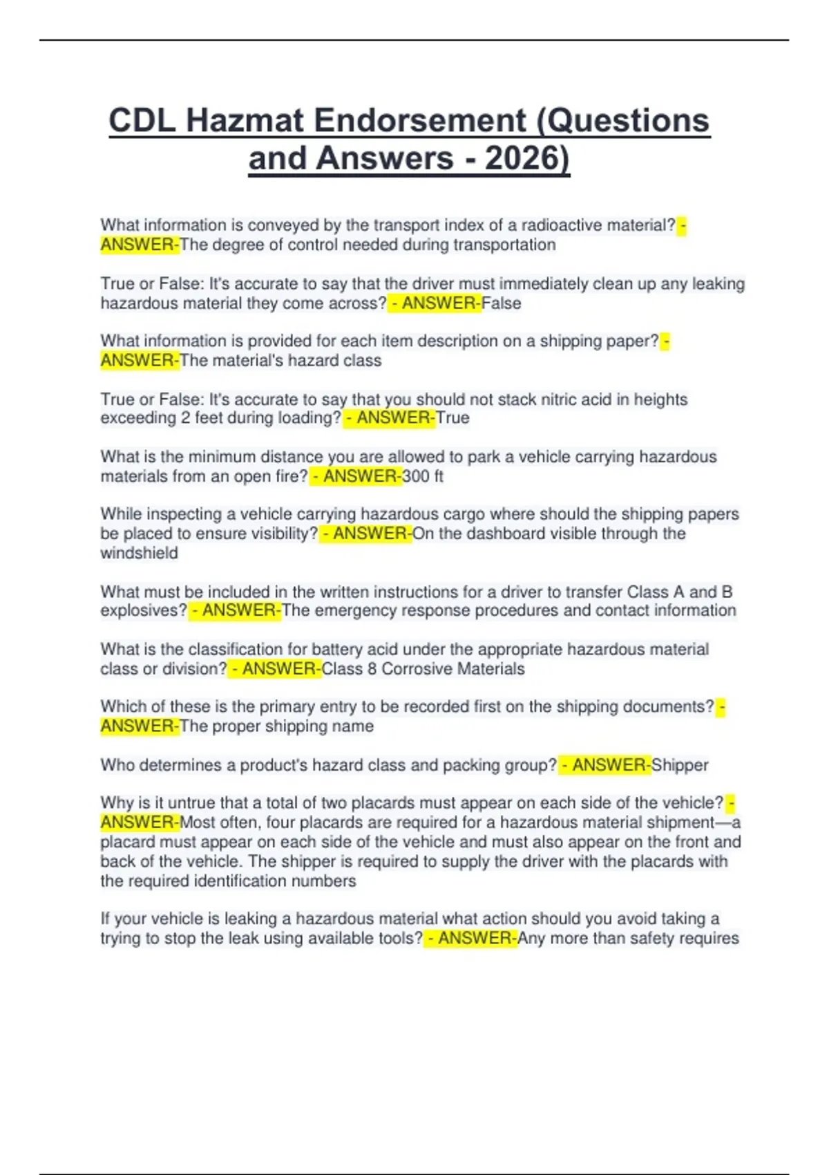 CDL Hazmat Endorsement (Questions and Answers - 2026)