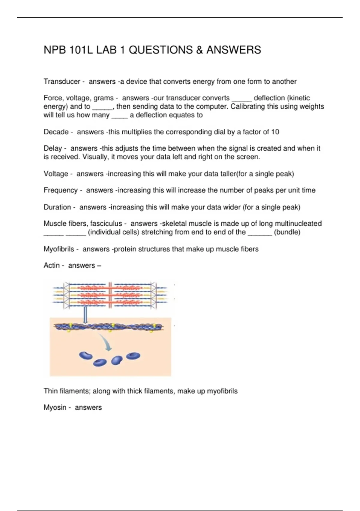Sarcomere - answers –