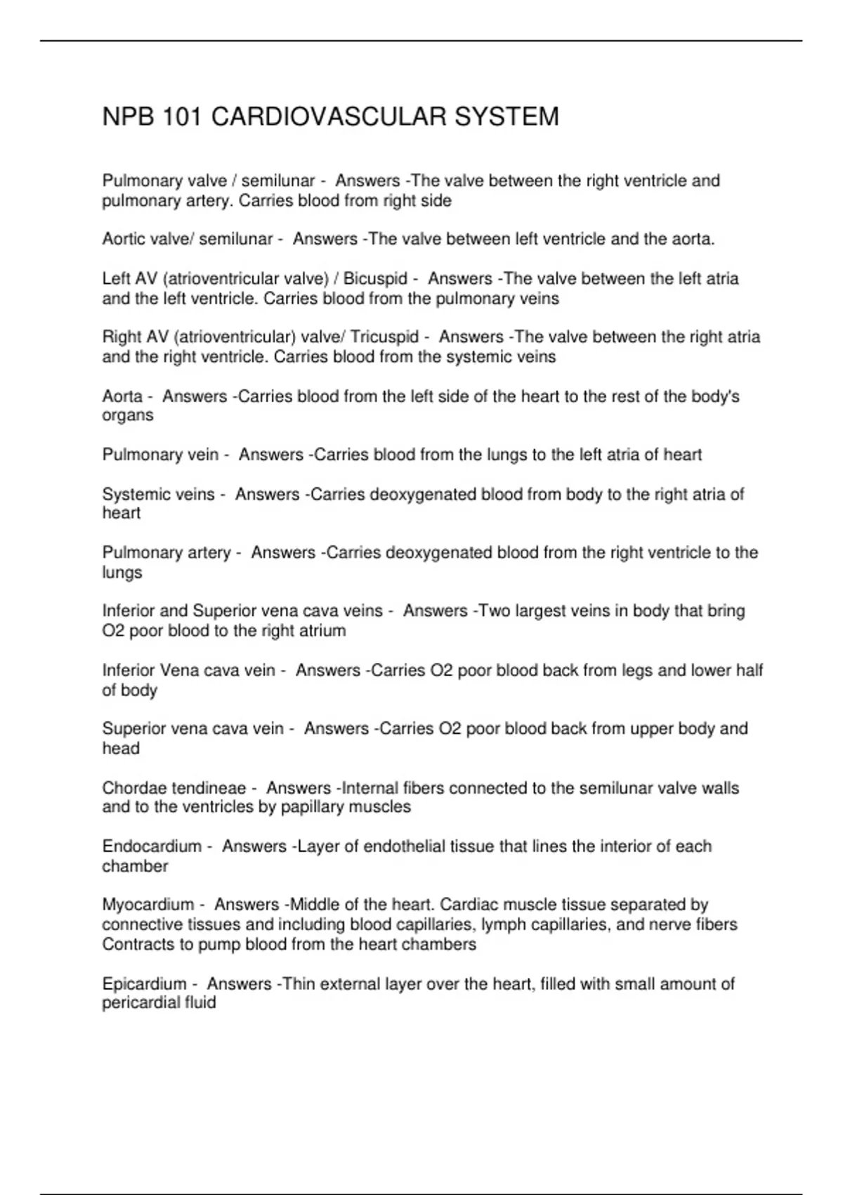NPB 101 CARDIOVASCULAR SYSTEM