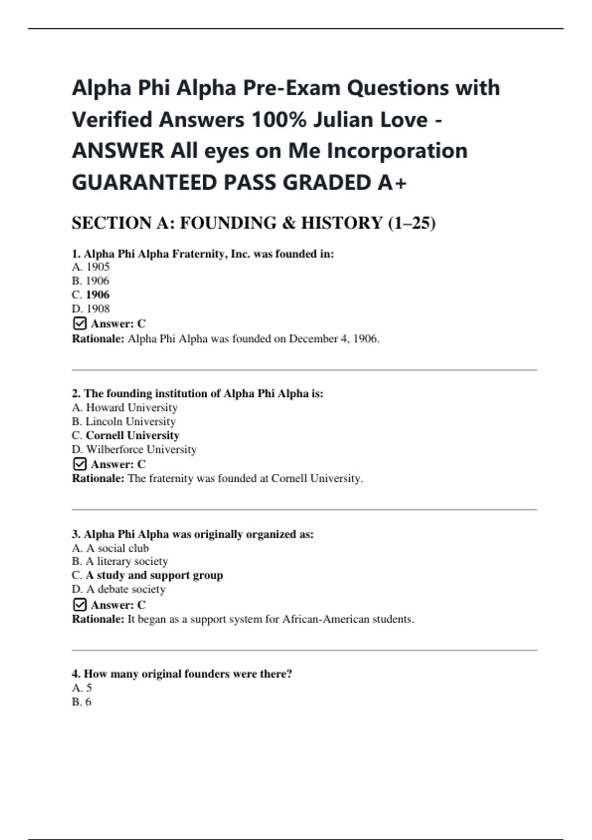 Alpha Phi Alpha Pre-Exam Questions with