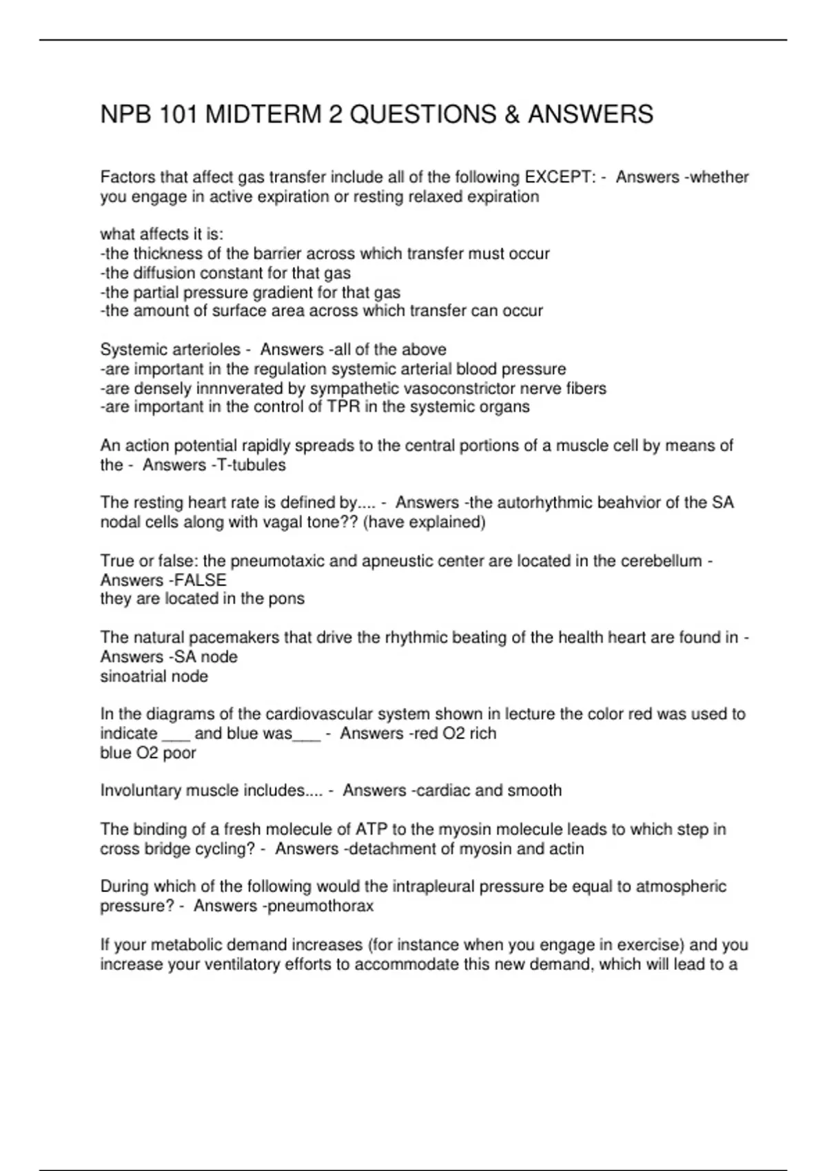 NPB 101 MIDTERM 2 QUESTIONS & ANSWERS