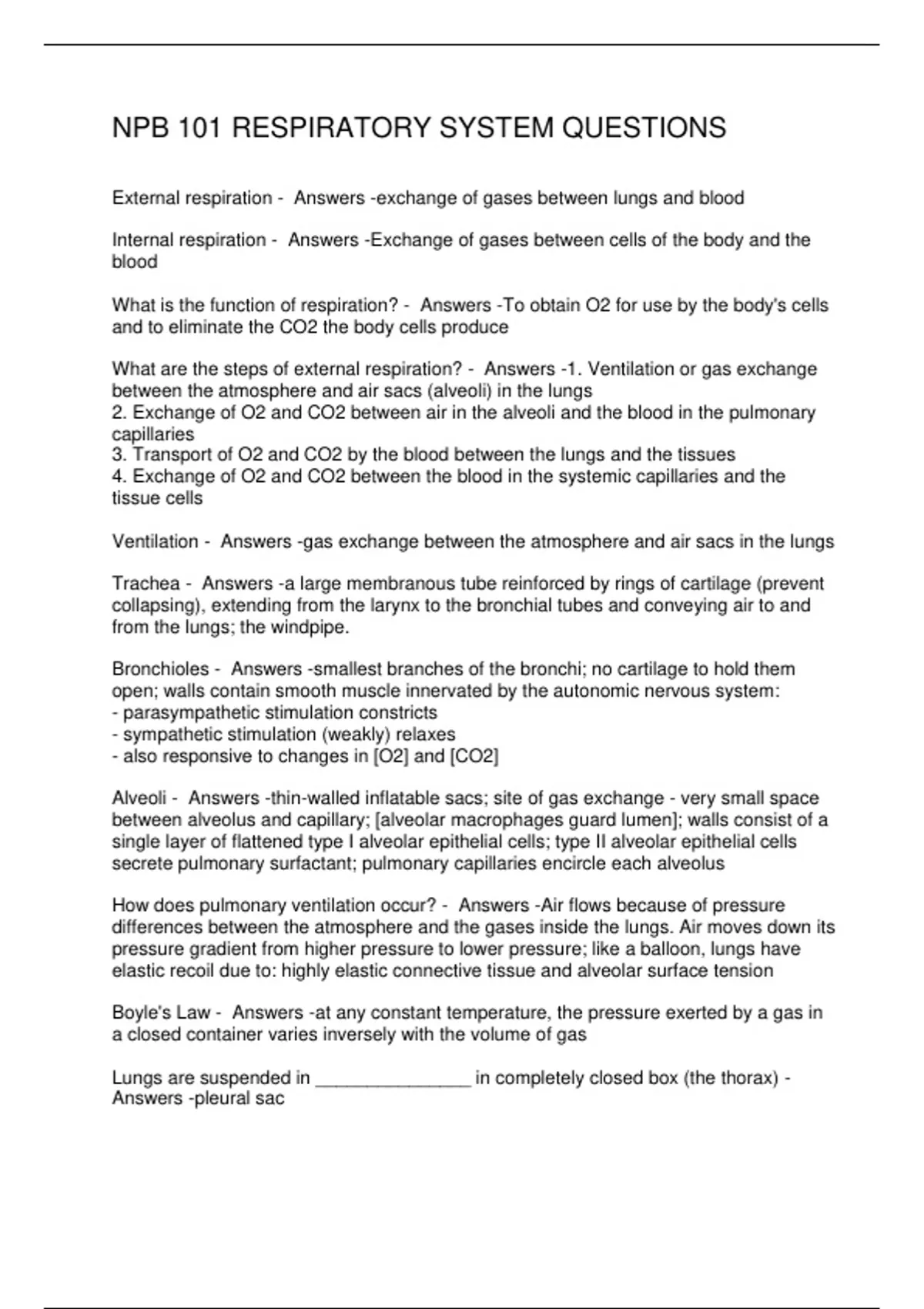 NPB 101 RESPIRATORY SYSTEM QUESTIONS