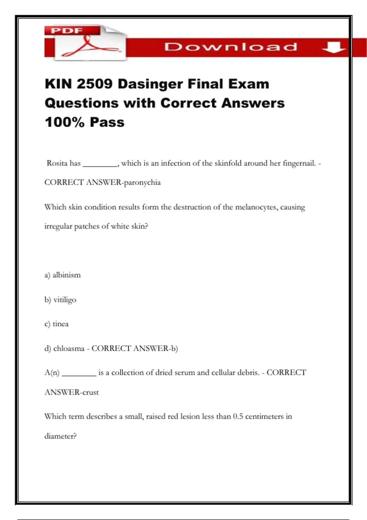 KIN 2509 Dasinger Final Exam Questions with Correct Answers 100% Pass