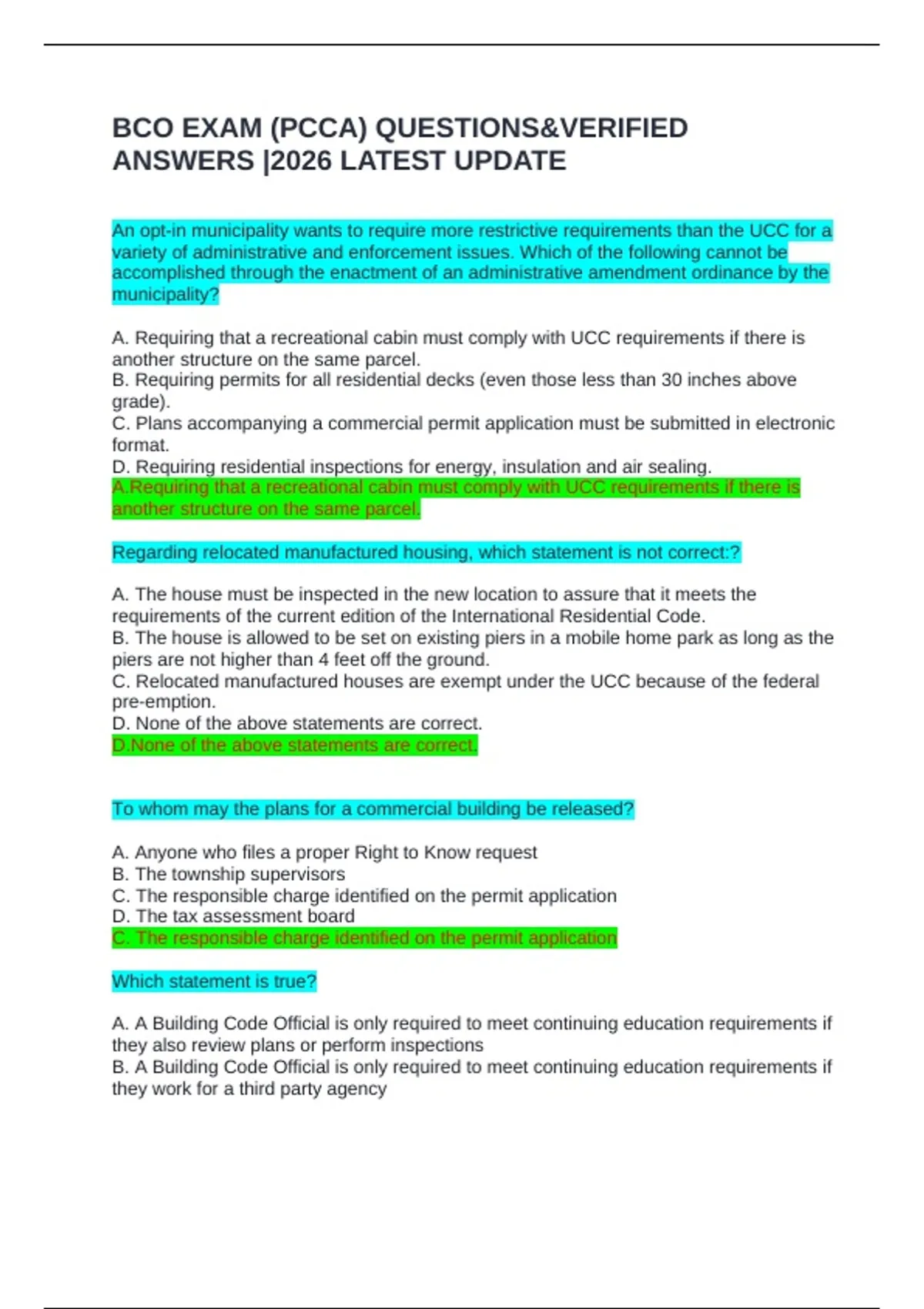 BCO EXAM (PCCA) QUESTIONS&VERIFIED