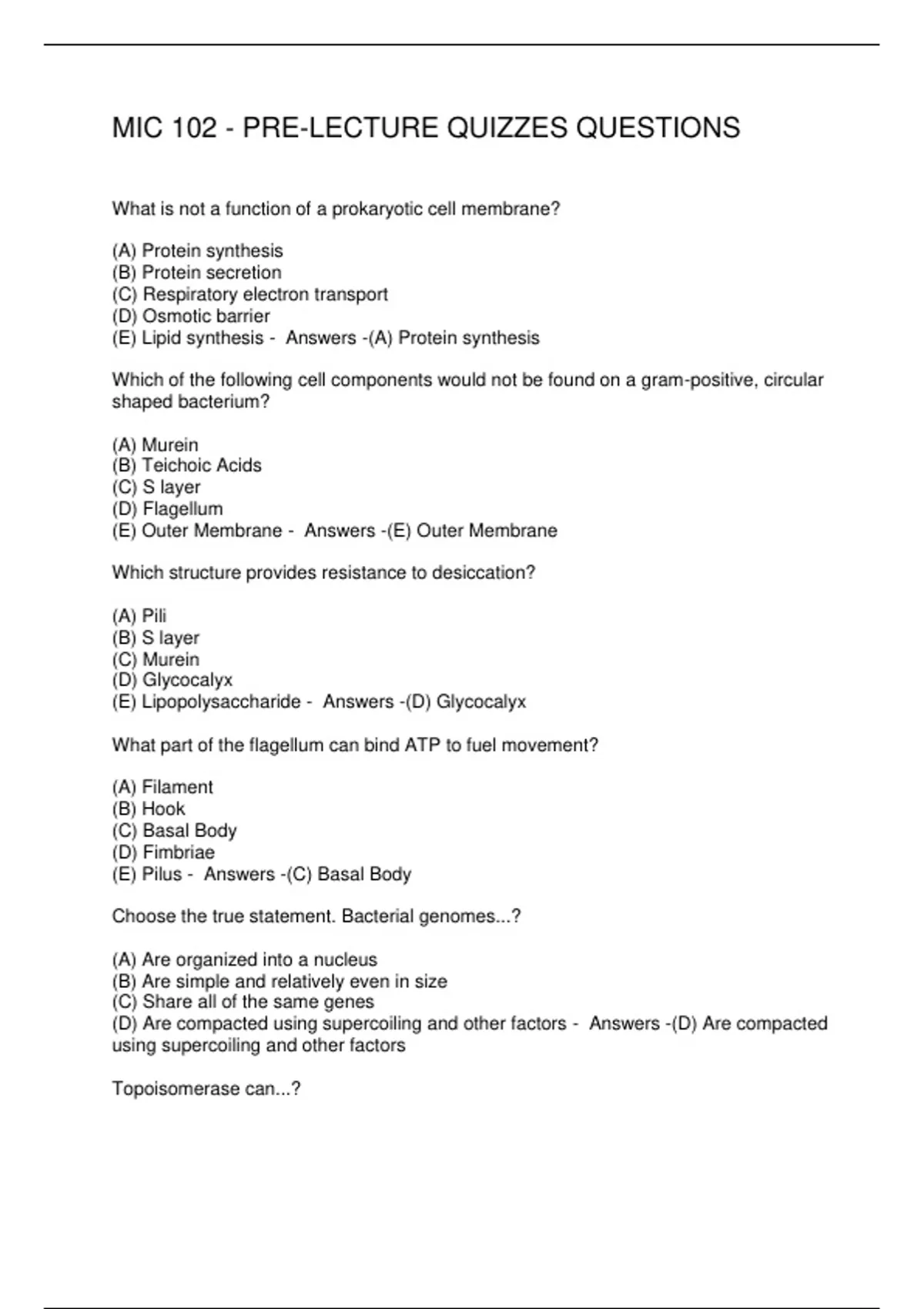 MIC 102 - PRE-LECTURE QUIZZES QUESTIONS